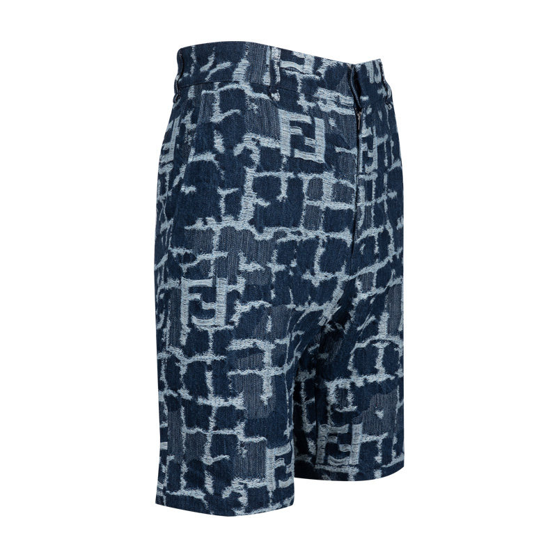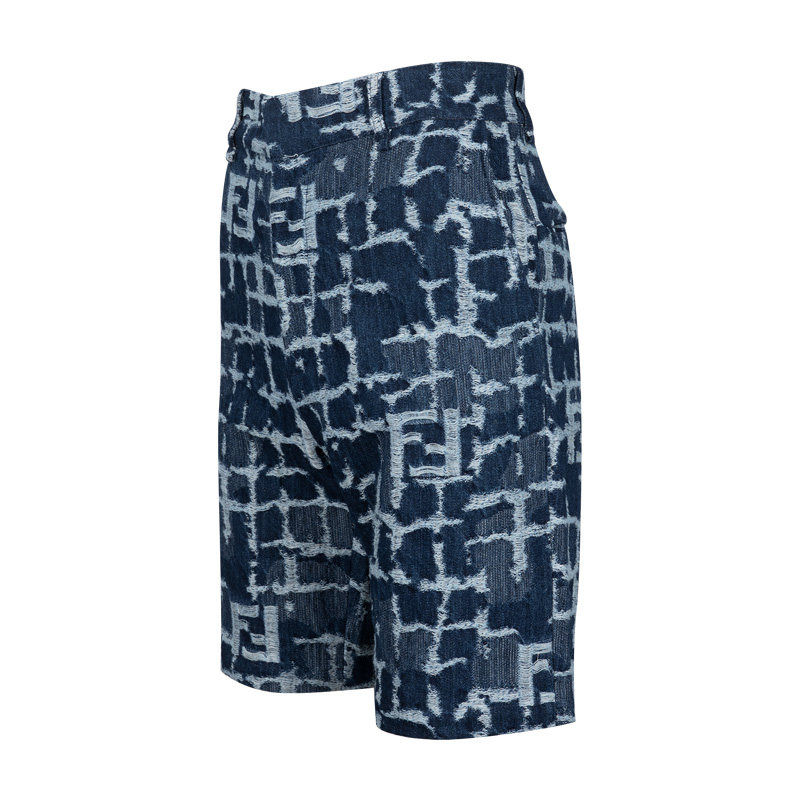 XY促销 FENDI芬迪男经典 男士 2025年春夏新款 仿旧休闲牛仔短裤