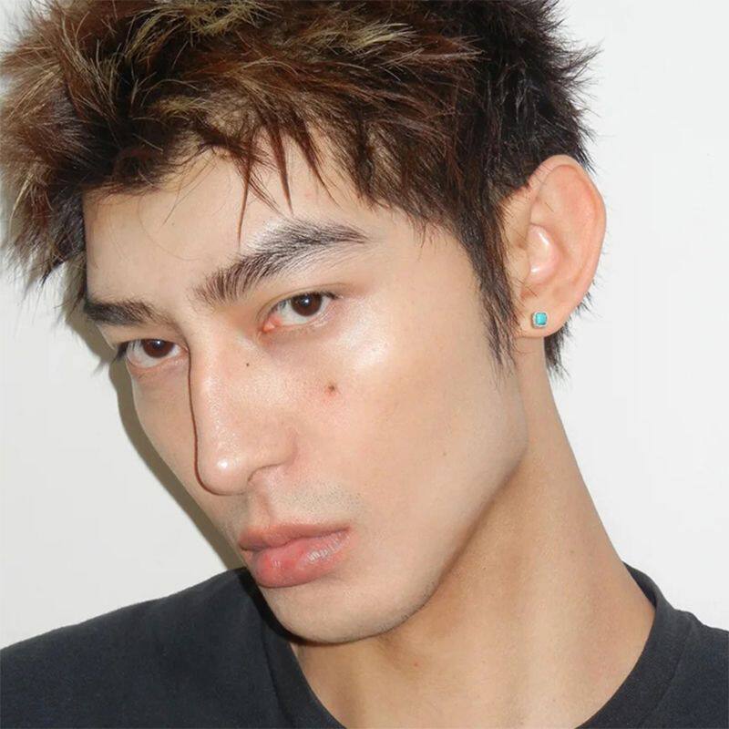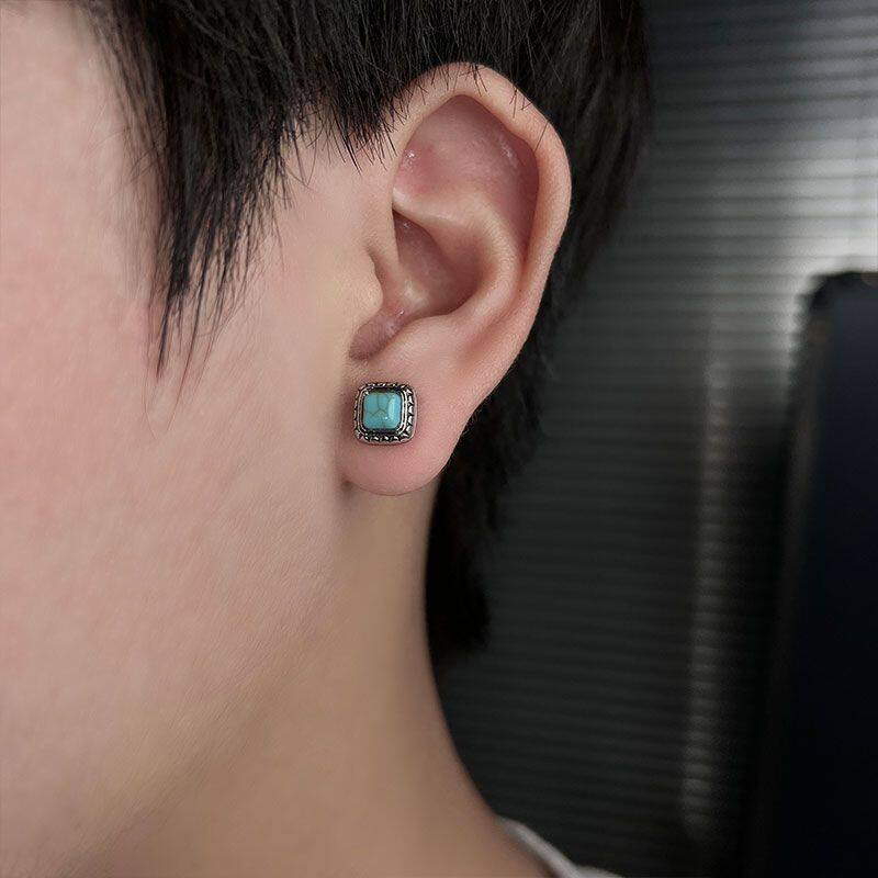 耳骨钉男士 藏式 复古耳钉男小巧精致轻奢男式 方形设计男生高级耳饰