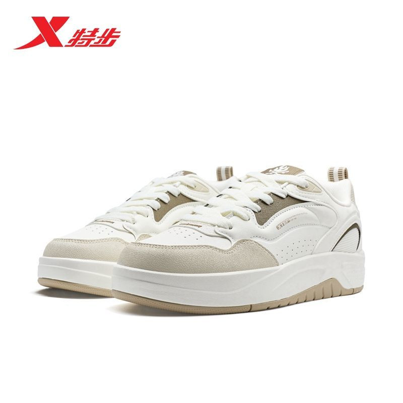 男士 2026春季 新款 特步启浪LITE板鞋 皮面耐磨小白鞋 974119310026