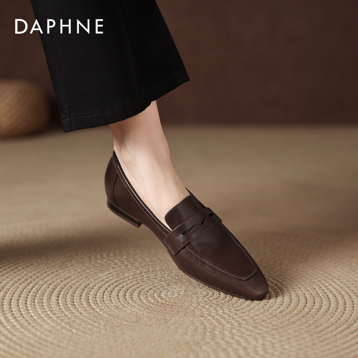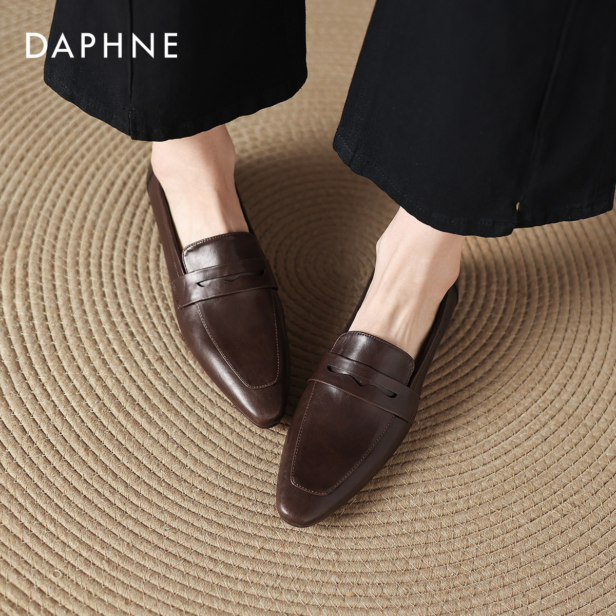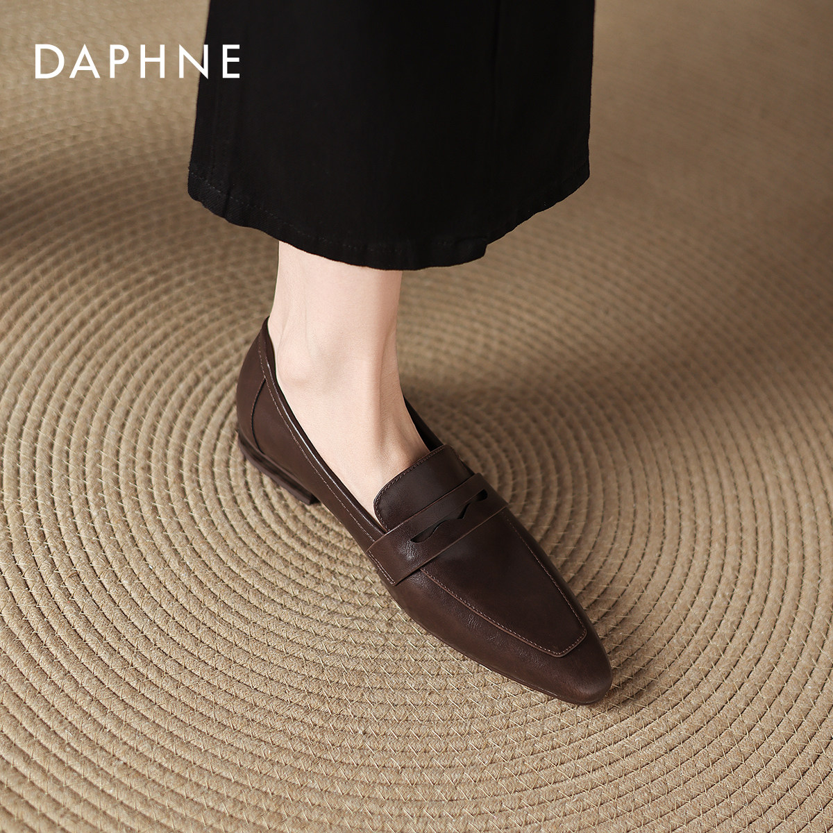 女2026冬季 新款 尖头一脚蹬皮鞋 达芙妮复古乐福鞋 软底通勤粗跟单鞋