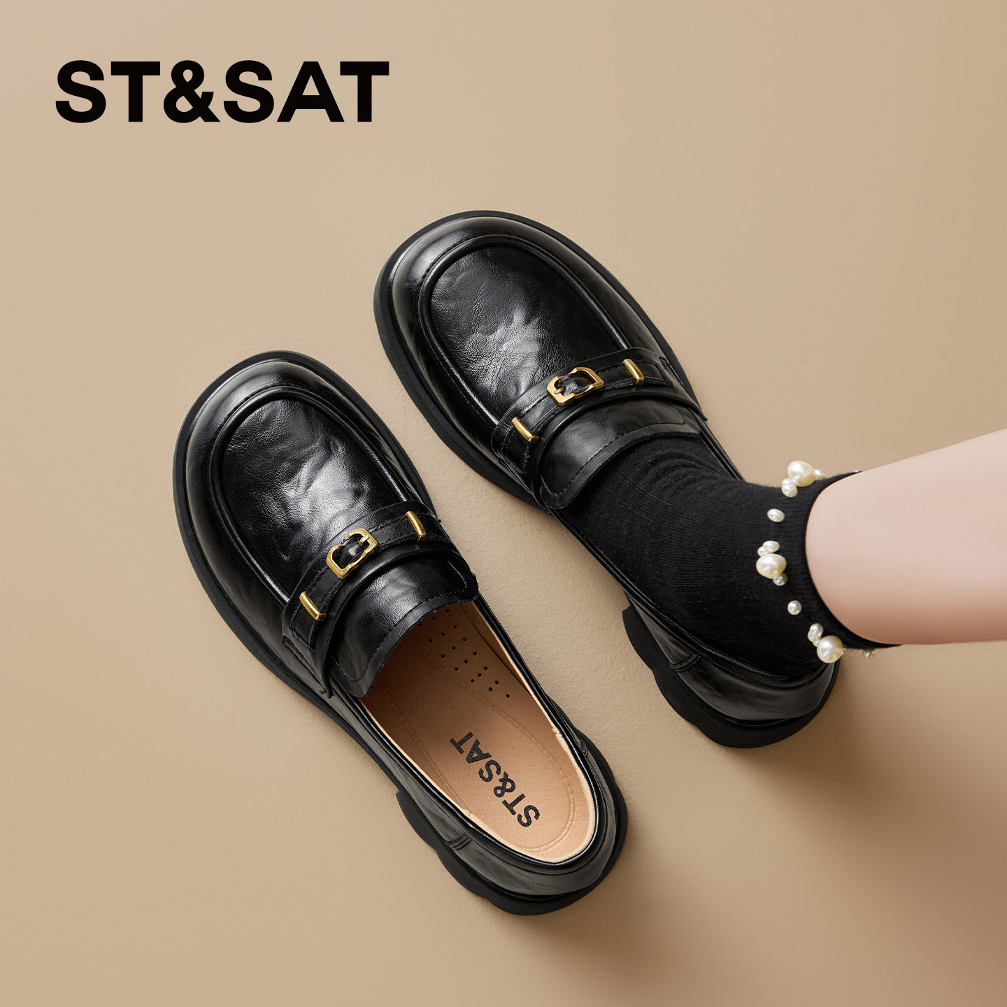 星期六厚底乐福鞋 懒人一脚蹬英伦风复古小皮鞋 女增高春季 2026新款