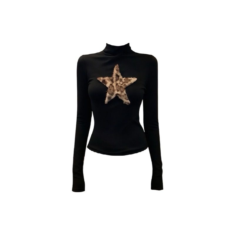 胖mm显瘦时尚 大码 气质上衣 长袖 T恤女秋冬季 美式 辣妹豹纹星星修身
