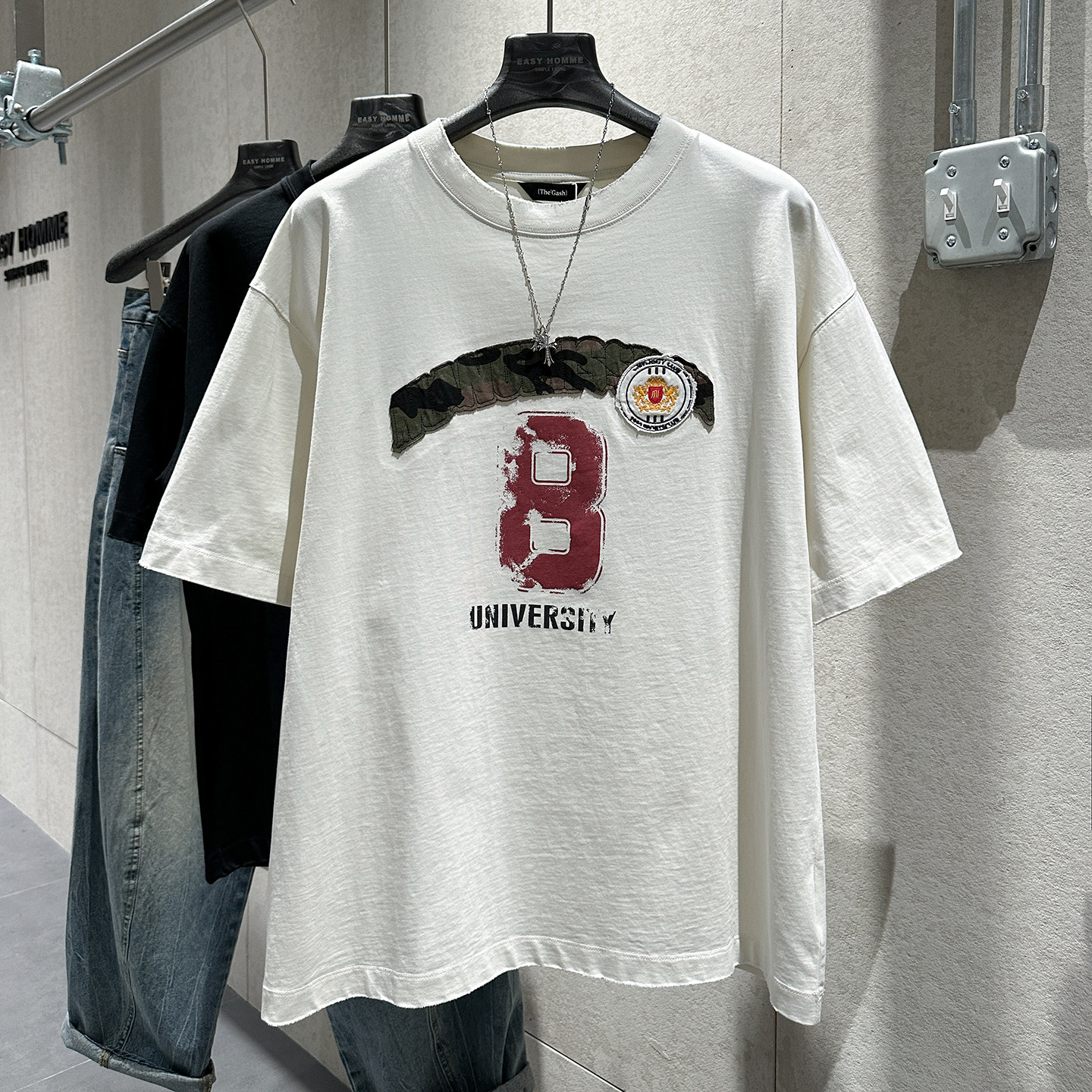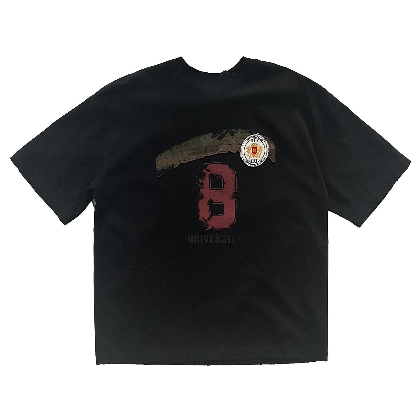 潮流廓形圆领短袖 男个性 贴布印花刮破设计宽松版 早春新款 型T恤衫