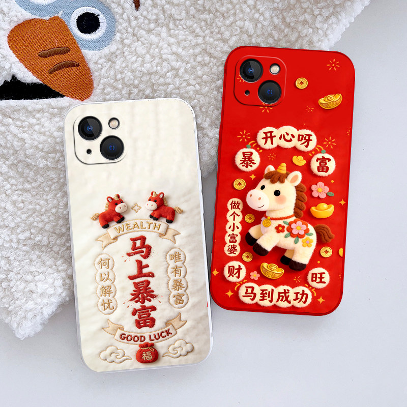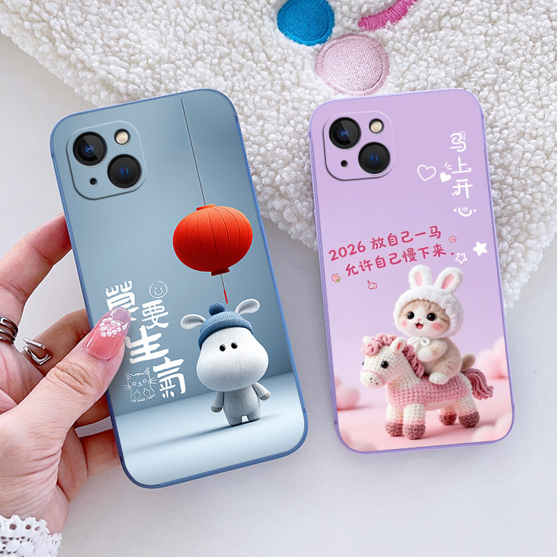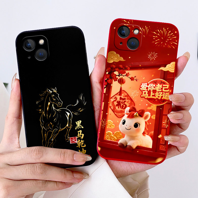适用iPhone苹果14手机壳A2884保护套iPh0ne14潮男女防摔中国风硅胶情侣动漫欧美全包边磨砂新款 马年卡通软壳