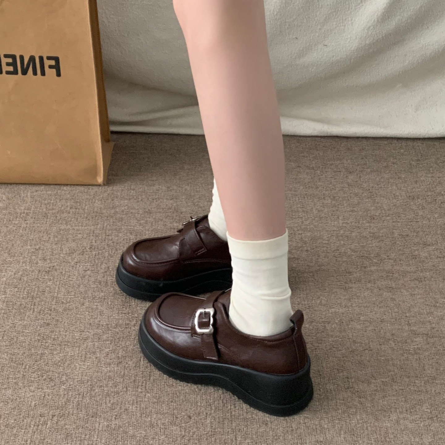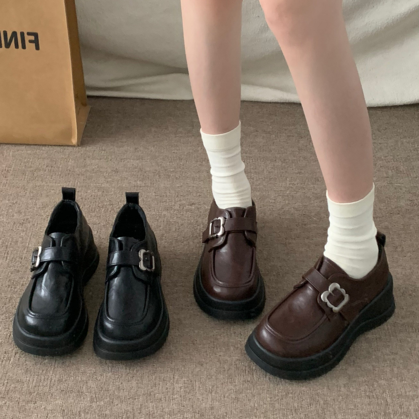 厚底乐福鞋 百搭英伦复古风防滑增高jk配裙子小皮鞋 女2026春季 新款