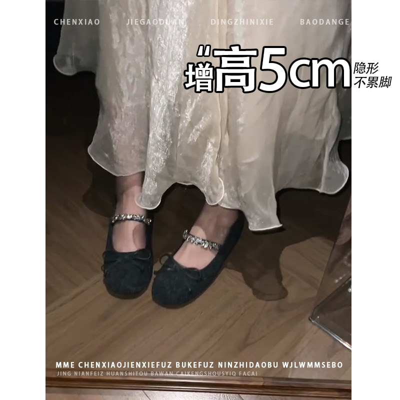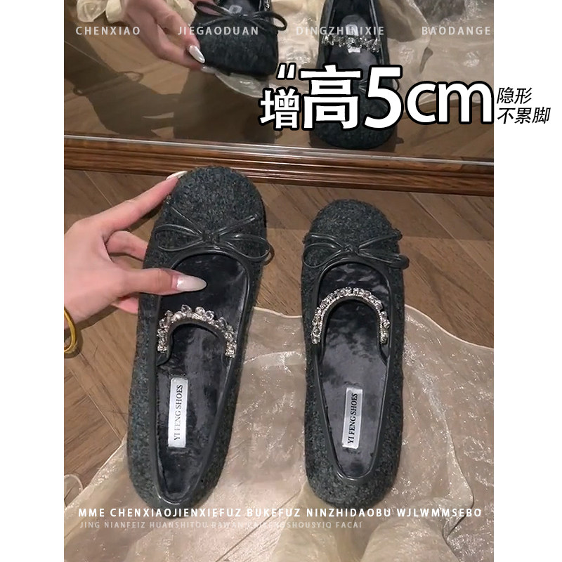 不累脚 女 水钻浅口单鞋 保暖加绒内增高5CM玛丽珍鞋 2025秋冬新款