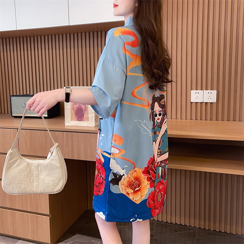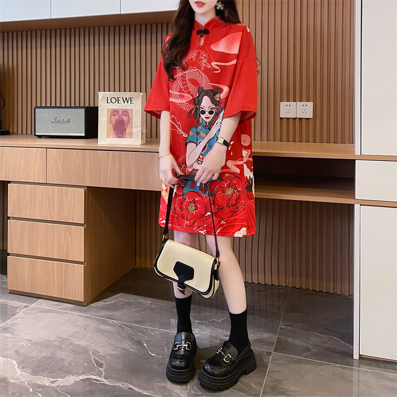 炸街爆款 短袖 T恤连衣裙2025夏季 时尚 胖mm大码 宽松显瘦改良旗袍裙