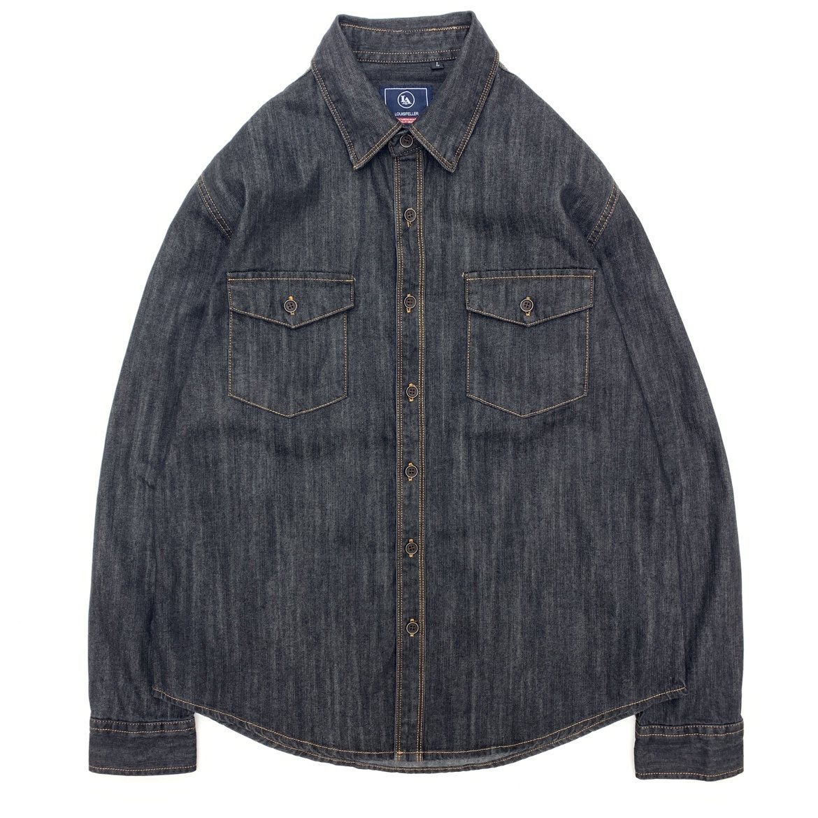 重磅机车款 阿美咔叽牛仔衬衫 男全棉重水洗工装 牛仔宽松深灰色衬衣