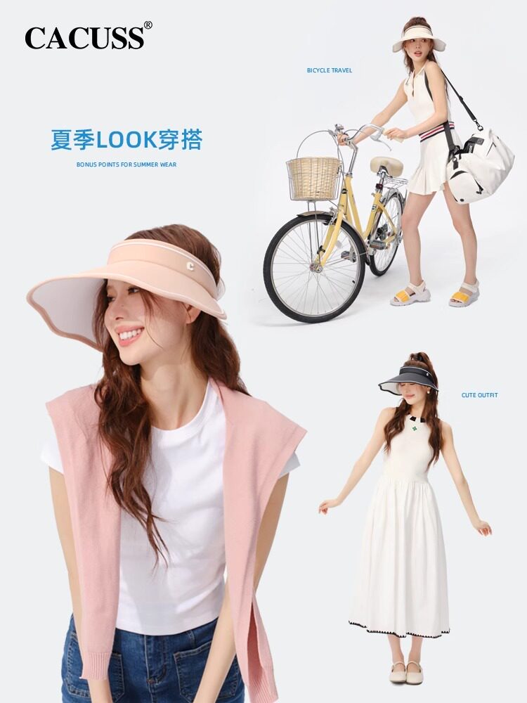 CACUSS新款 大帽檐防晒帽女春夏可折叠户外空顶透气防紫外线遮阳帽