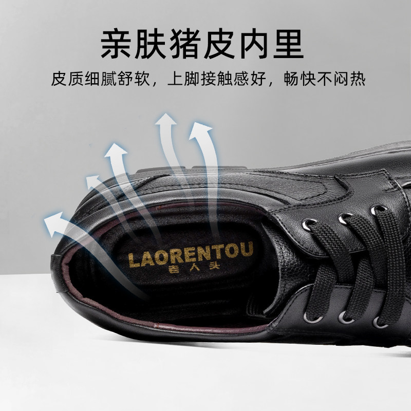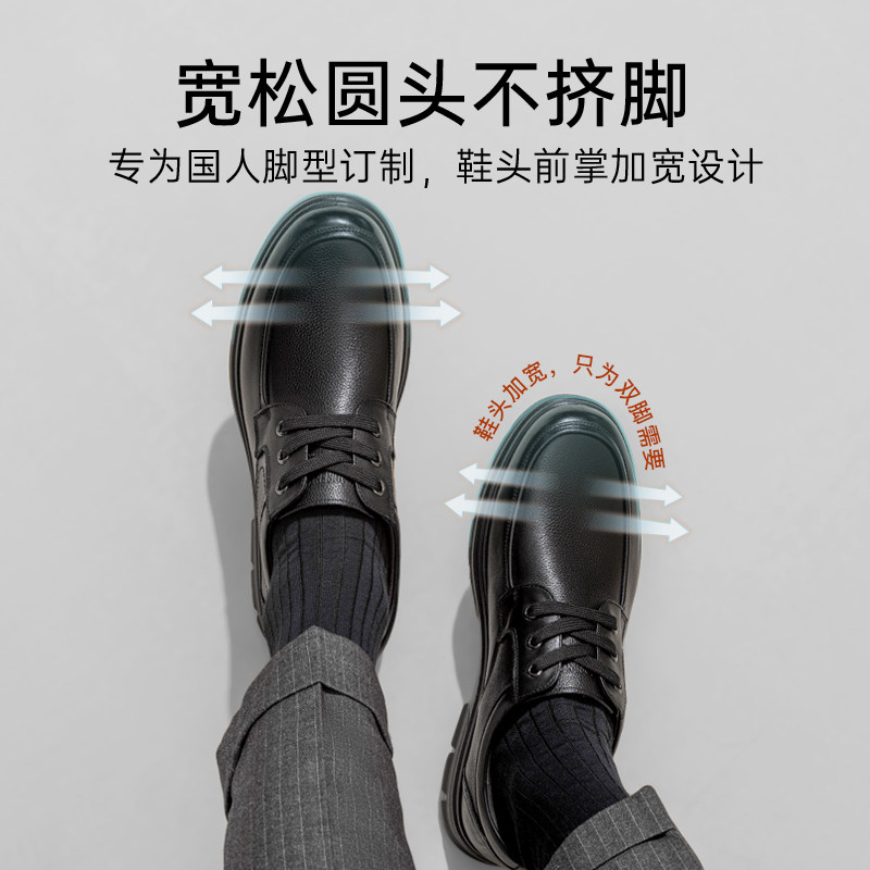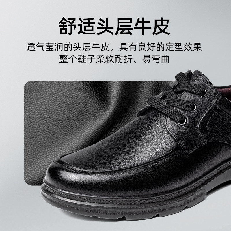 商务休闲中老年父亲透气系带鞋 老人头皮鞋 男真皮英伦软底2025新款