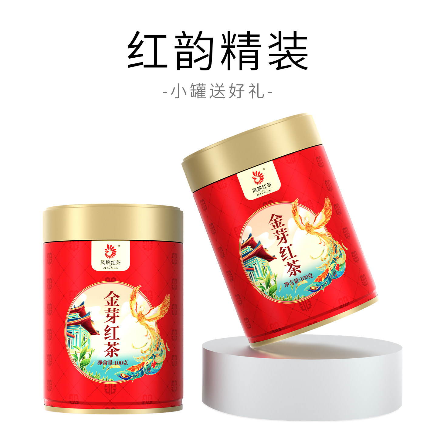凤牌红茶叶云南正宗凤庆滇红金芽特级蜜香红茶100g罐装 茶叶送礼品
