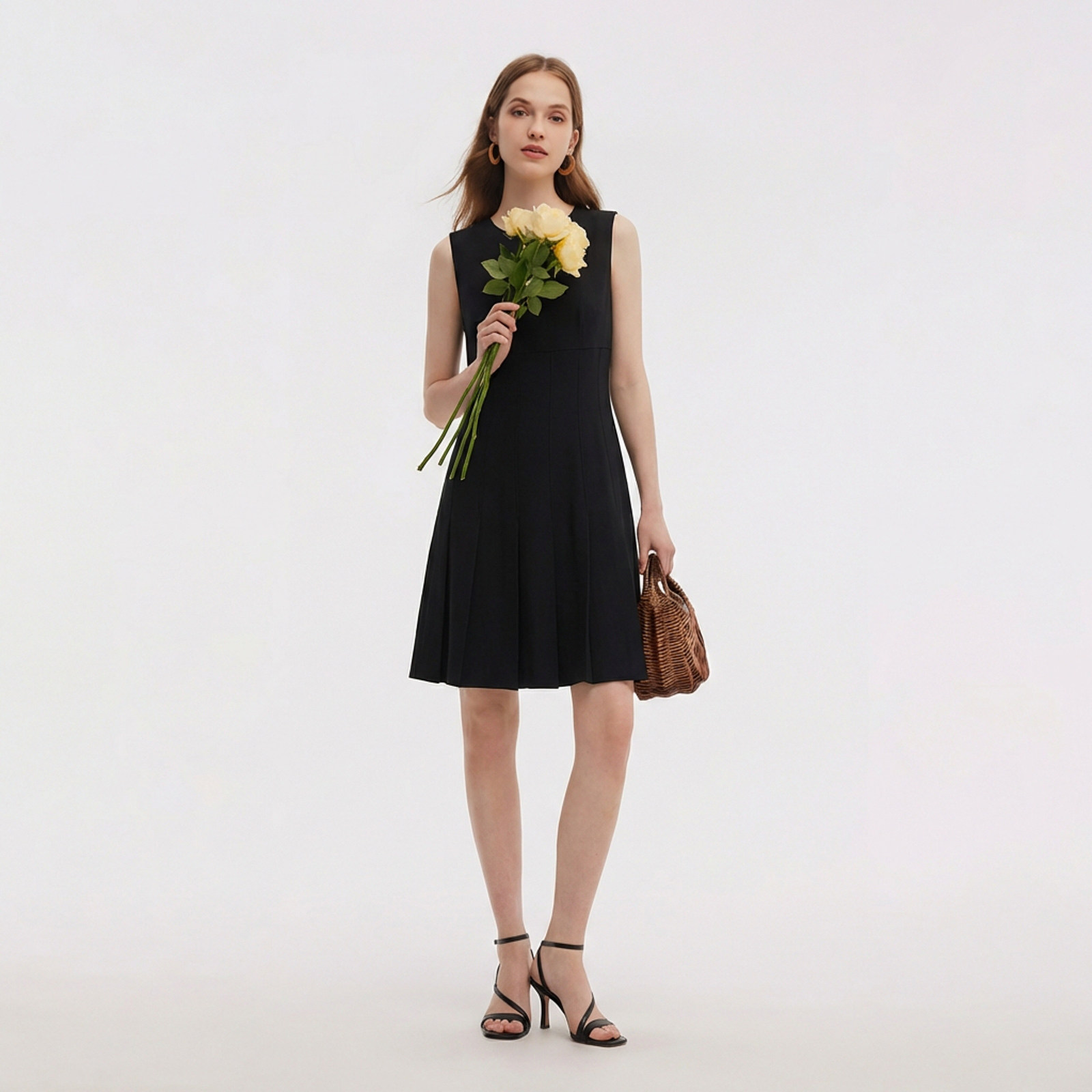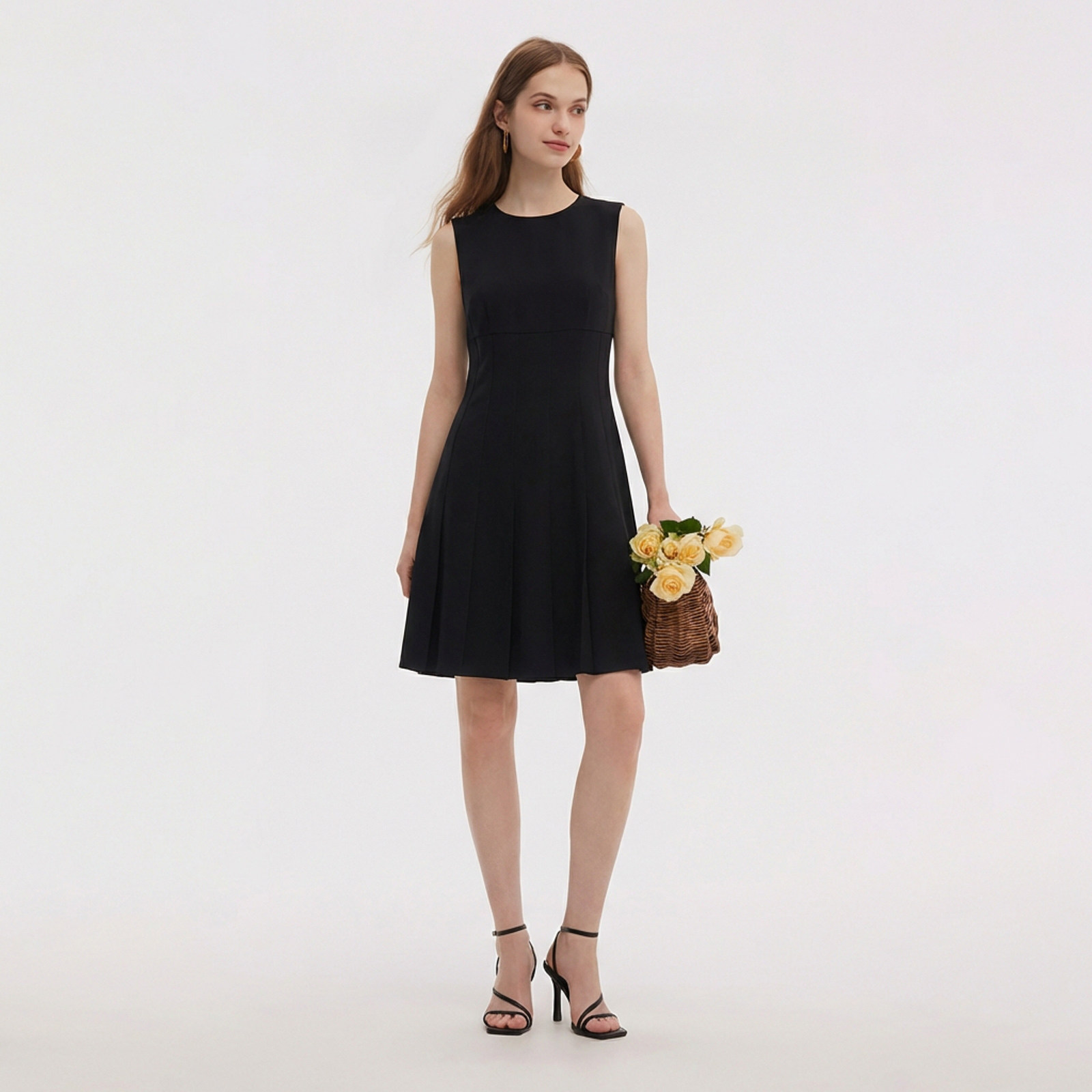 歌莉娅三醋酸黑色连衣裙女2026新款 春季 气质收腰背心裙1F3L4K0R0