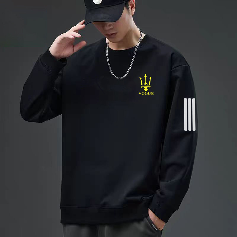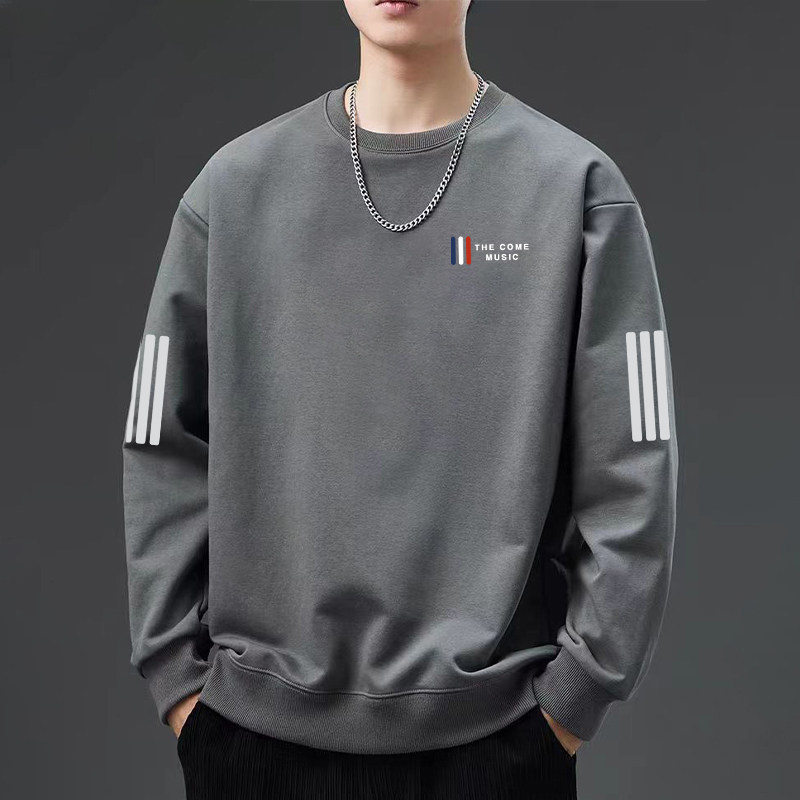 潮牌美式 长袖 男休闲春秋款 印花圆领外套青年运动百搭三杆卫衣潮流