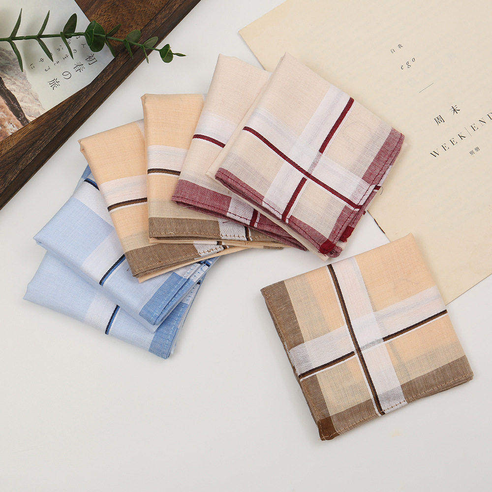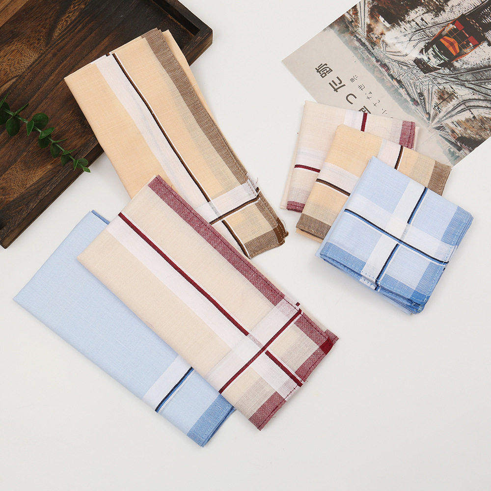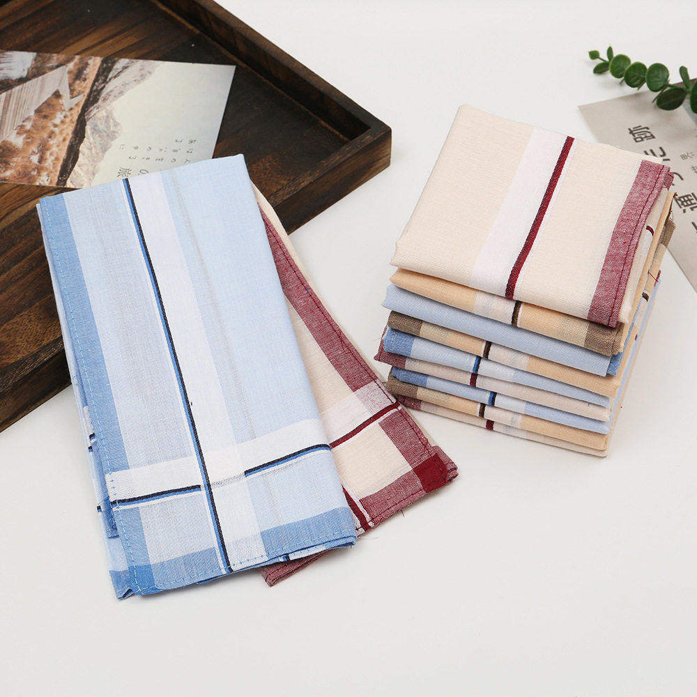 40cm男士 色织缎条方巾 怀旧吸水擦汗手绢经典 绅士全棉手帕薄款 老式