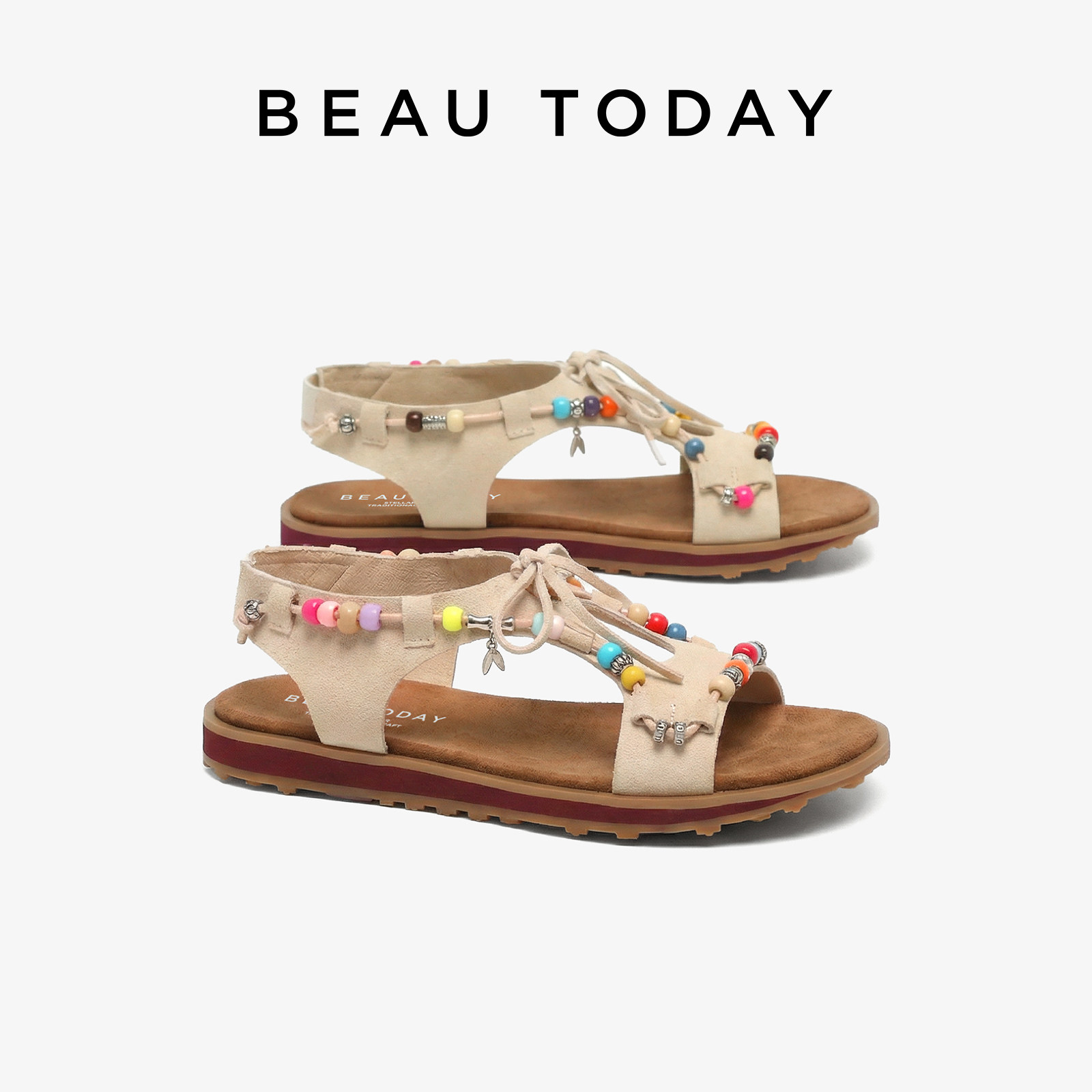 女款 2026新款 春季 BeauToday平底罗马凉鞋 波西米亚风一脚蹬沙滩鞋