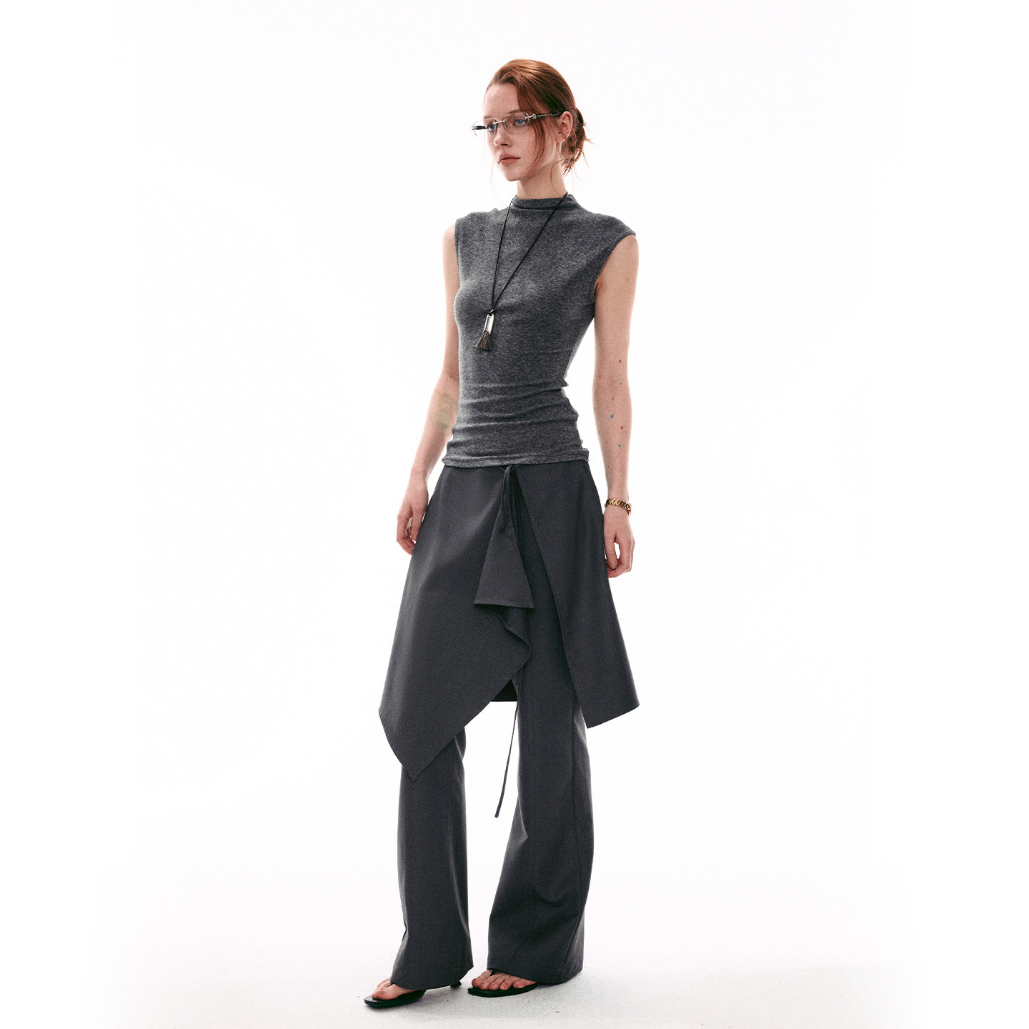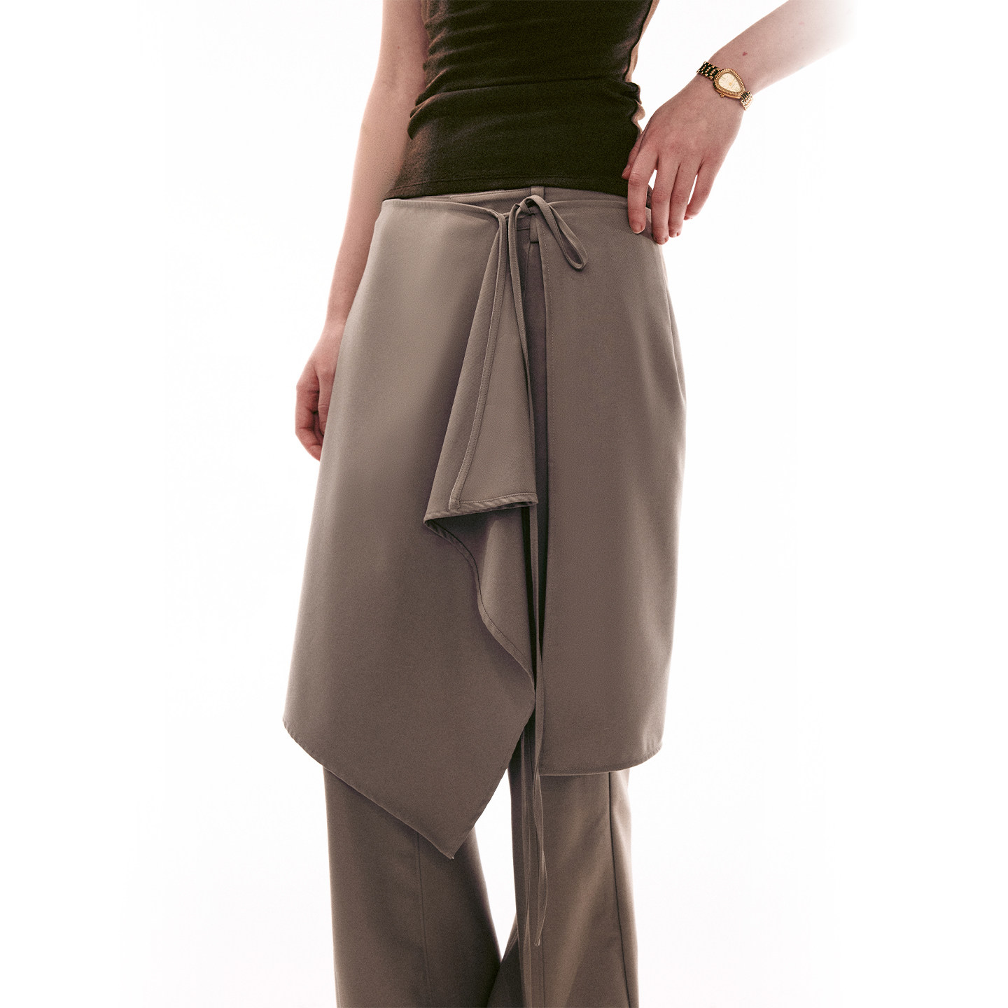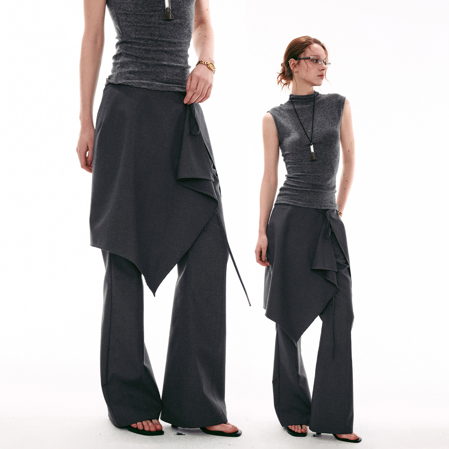 MOMENT 喇叭裤 26SS法式 SINGLE 叠穿式 真两件休闲裙裤 两件套长裤 女
