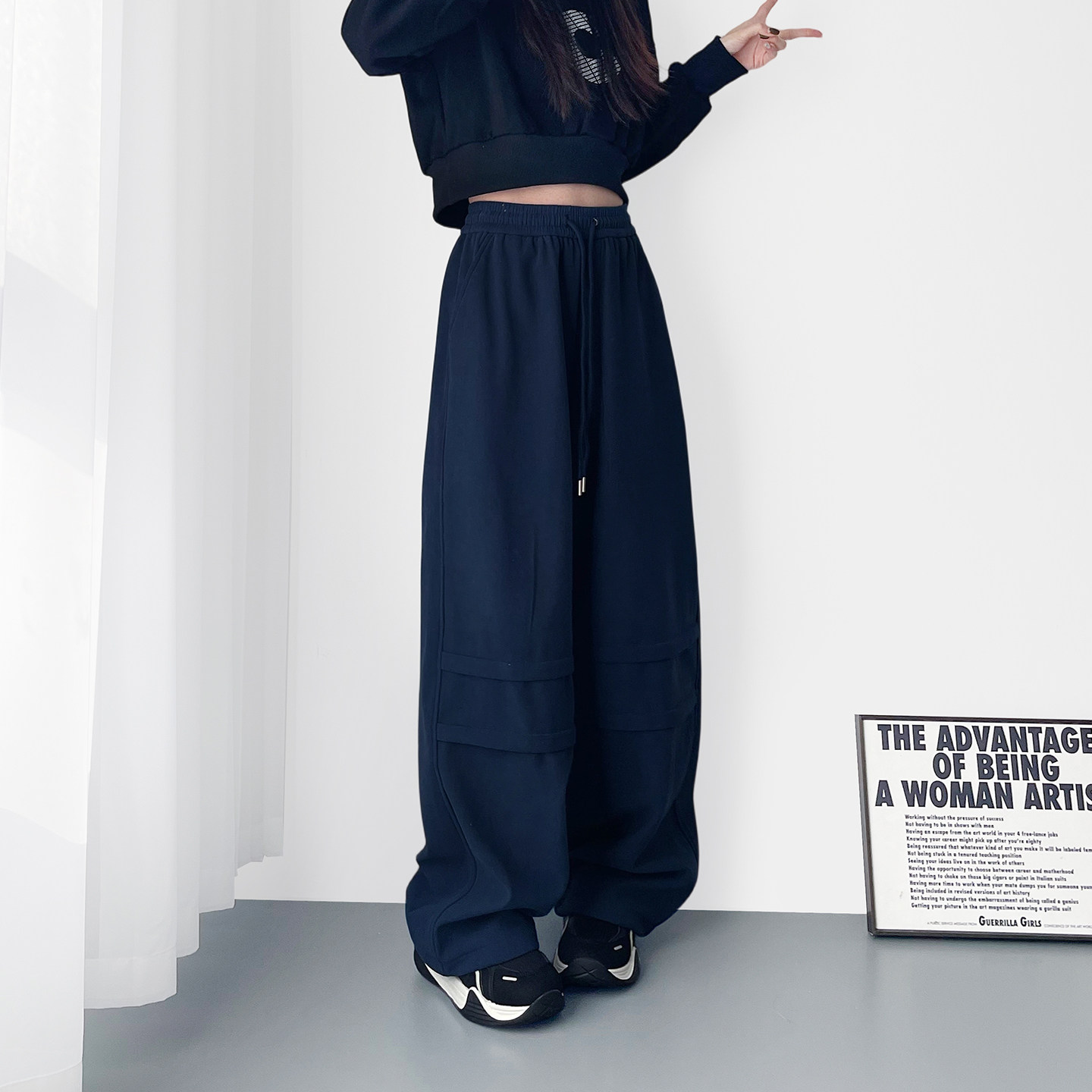 高腰设计感机能工装 胖mm显瘦加绒梨型身材直筒运动阔腿裤 裤 女冬季