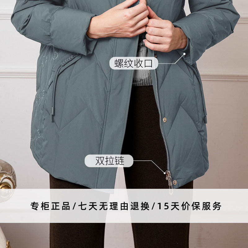 正品 赏心岁月中老年女装 新款 保暖外套大码 妈妈羽绒服中长款 冬季