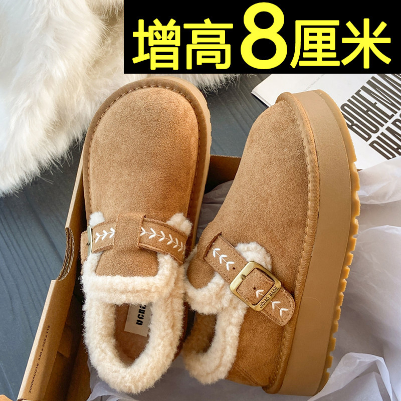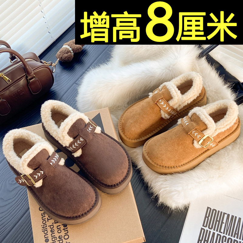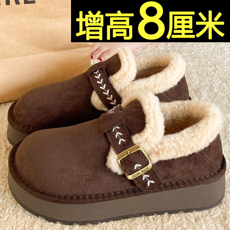 内增高加绒勃肯鞋 百搭加厚保暖雪地靴厚底毛毛棉鞋 女2025冬季 新款