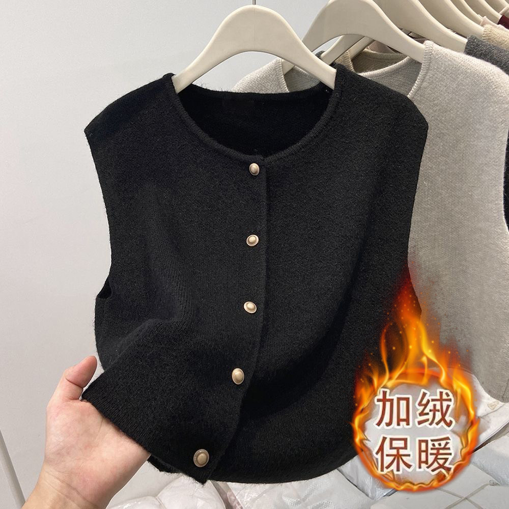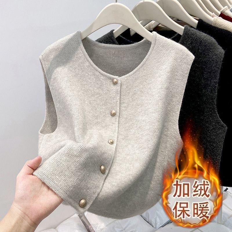 无袖 新款 加绒马甲背心女秋冬减龄百搭洋气上衣毛衣坎肩开衫 外套女