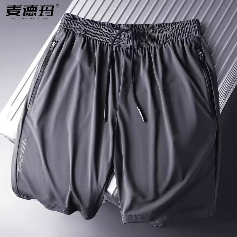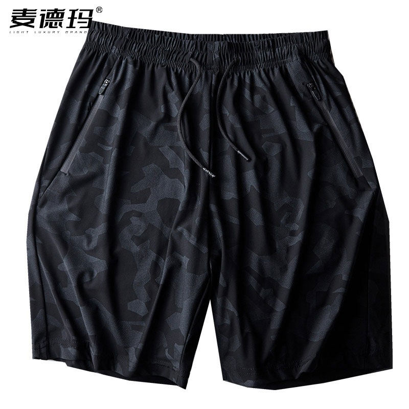薄款 运动短裤 男加肥加大码 宽松冰丝速干夏季 中年体育迷彩五分裤 衩