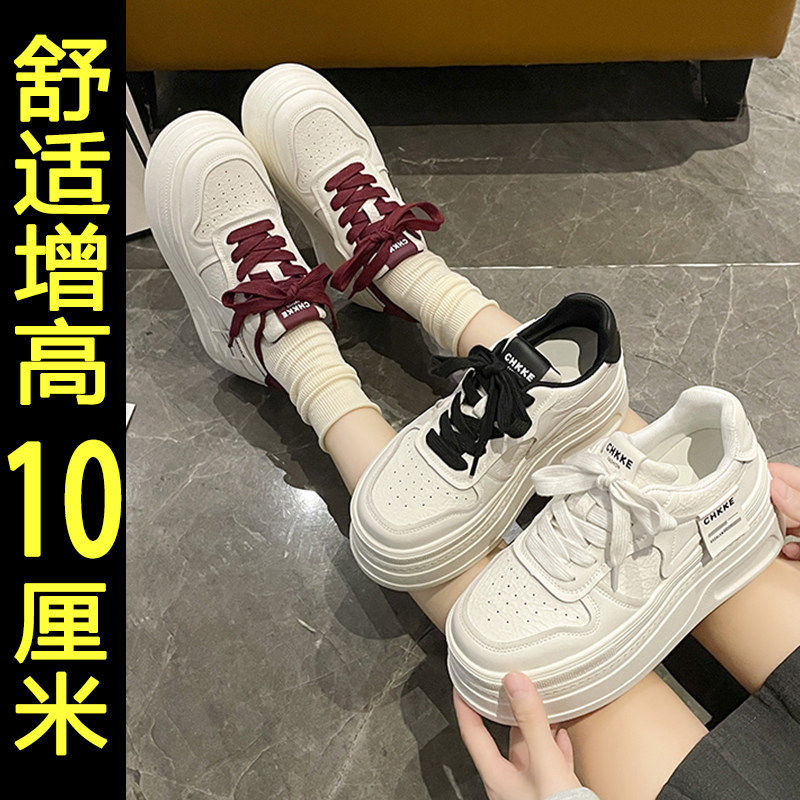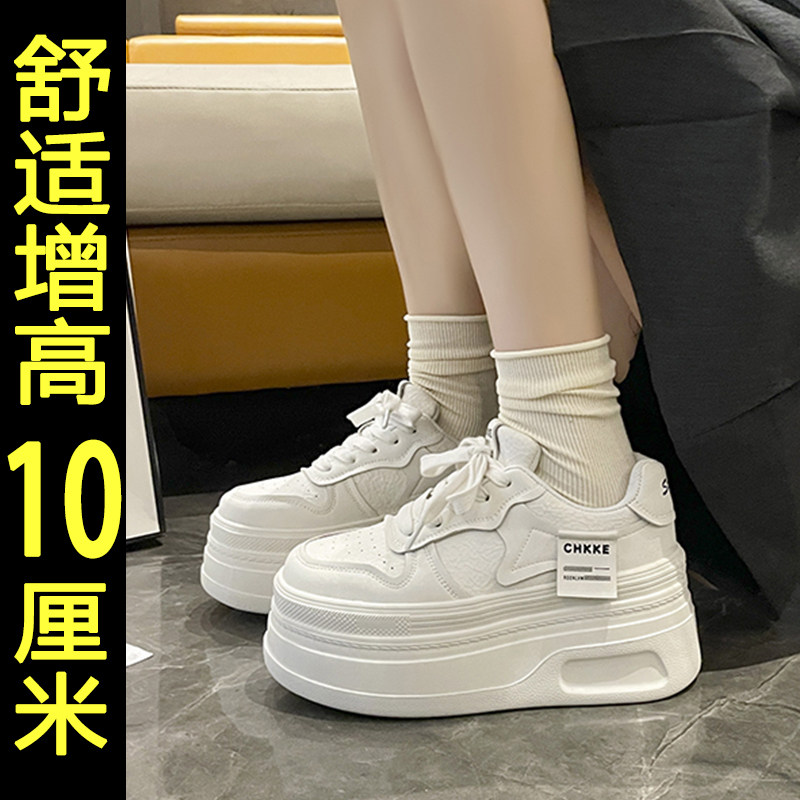 女2025新款 春冬厚底松糕鞋 百搭休闲板鞋 内增高小白鞋 轻便运动鞋