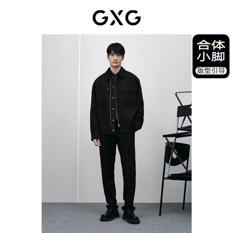24年春季 GXG男装 黑色绣花休闲小脚长裤 品GFX10200381