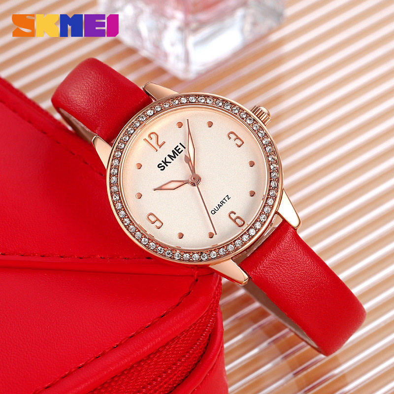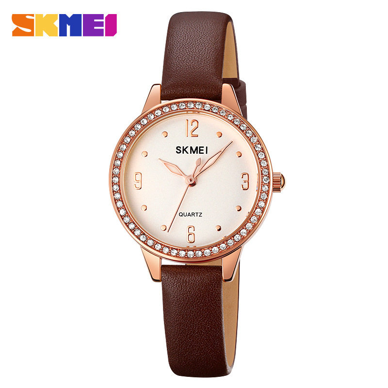 SKMEI时刻美新款 手表女士简约气质轻奢时尚 百搭休闲石英圆形女表
