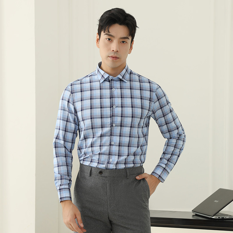 衬衫 男款 长袖 乔治白2025秋冬季 商务正装 格子通勤百搭尖领休闲透气
