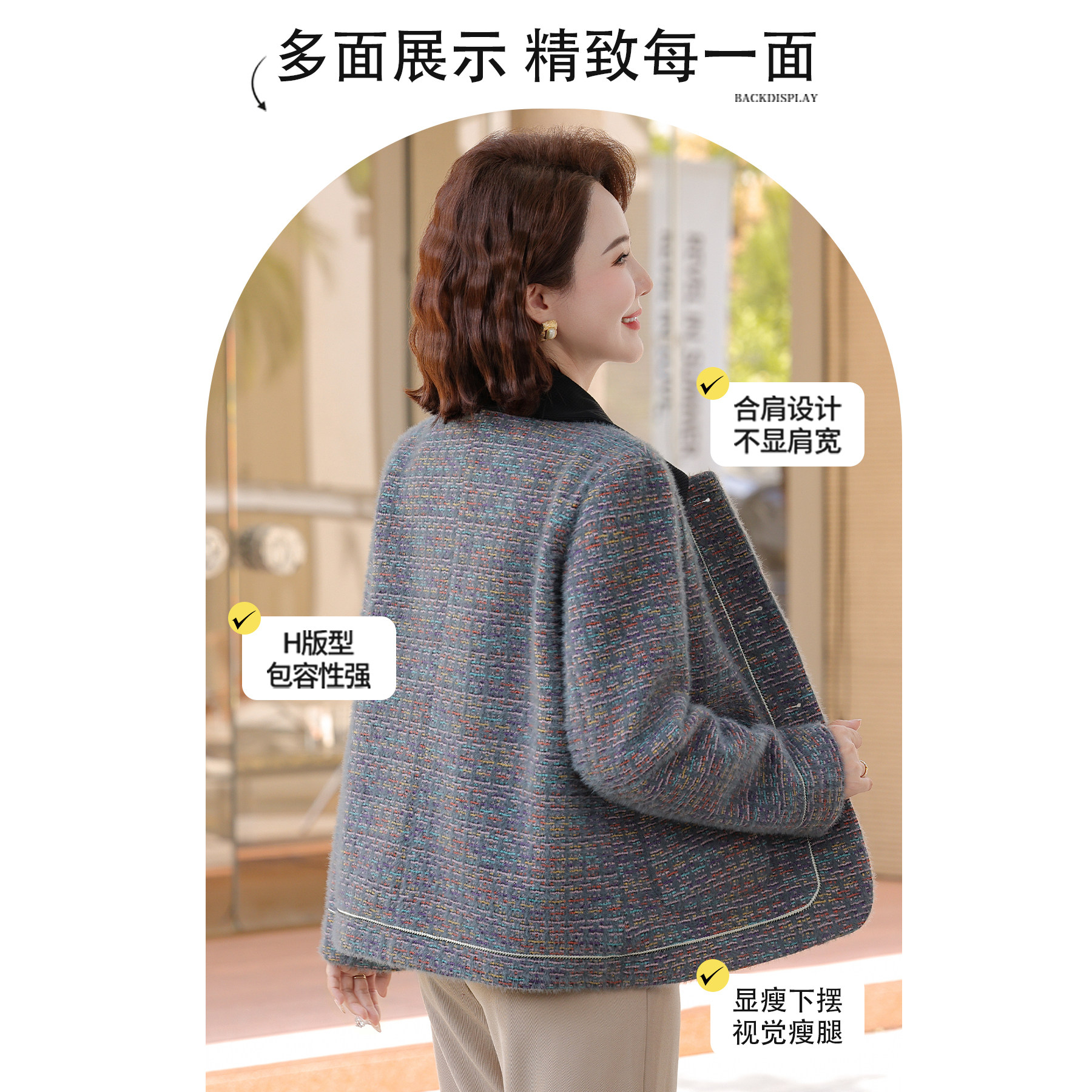恒源祥中老年人妈妈秋装 小香风外套2025新款 春秋洋气遮肚子毛呢
