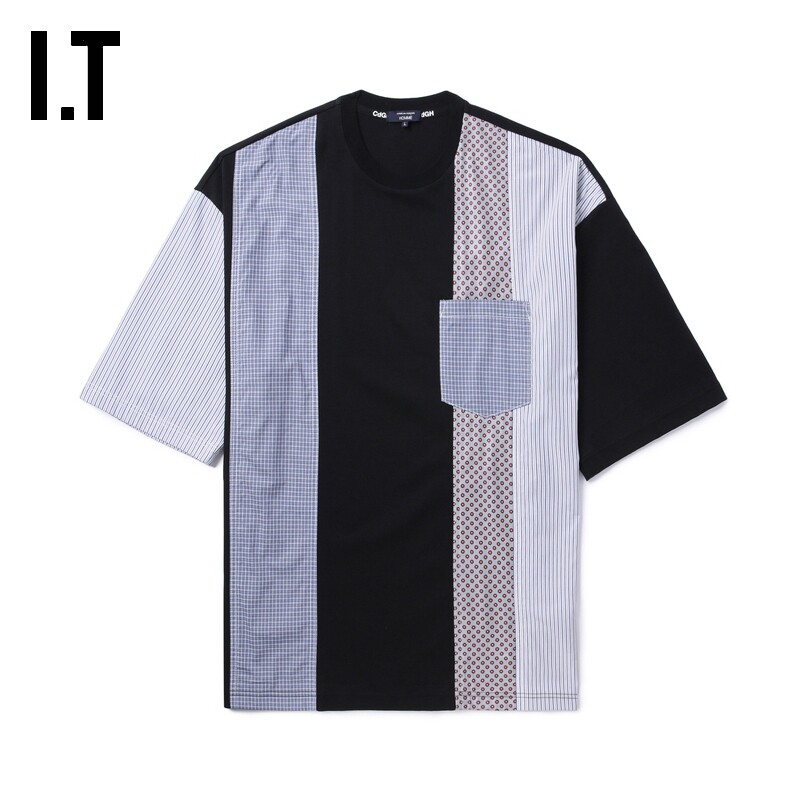 CDG T恤半袖 COMME GARCONS 裁布拼接宽松短袖 des HOMME男装