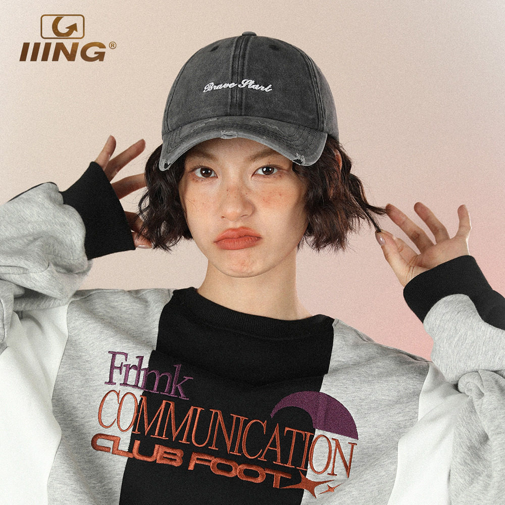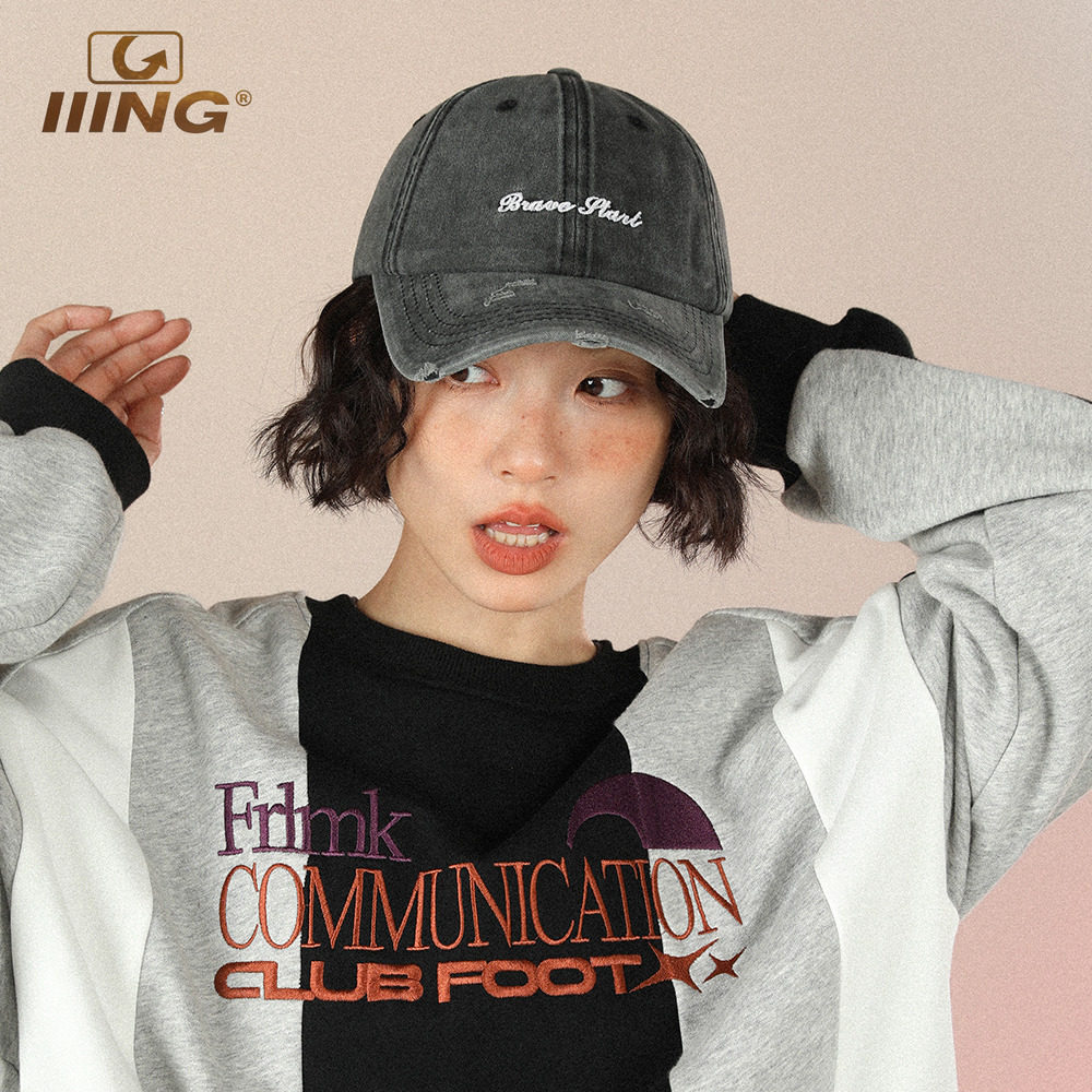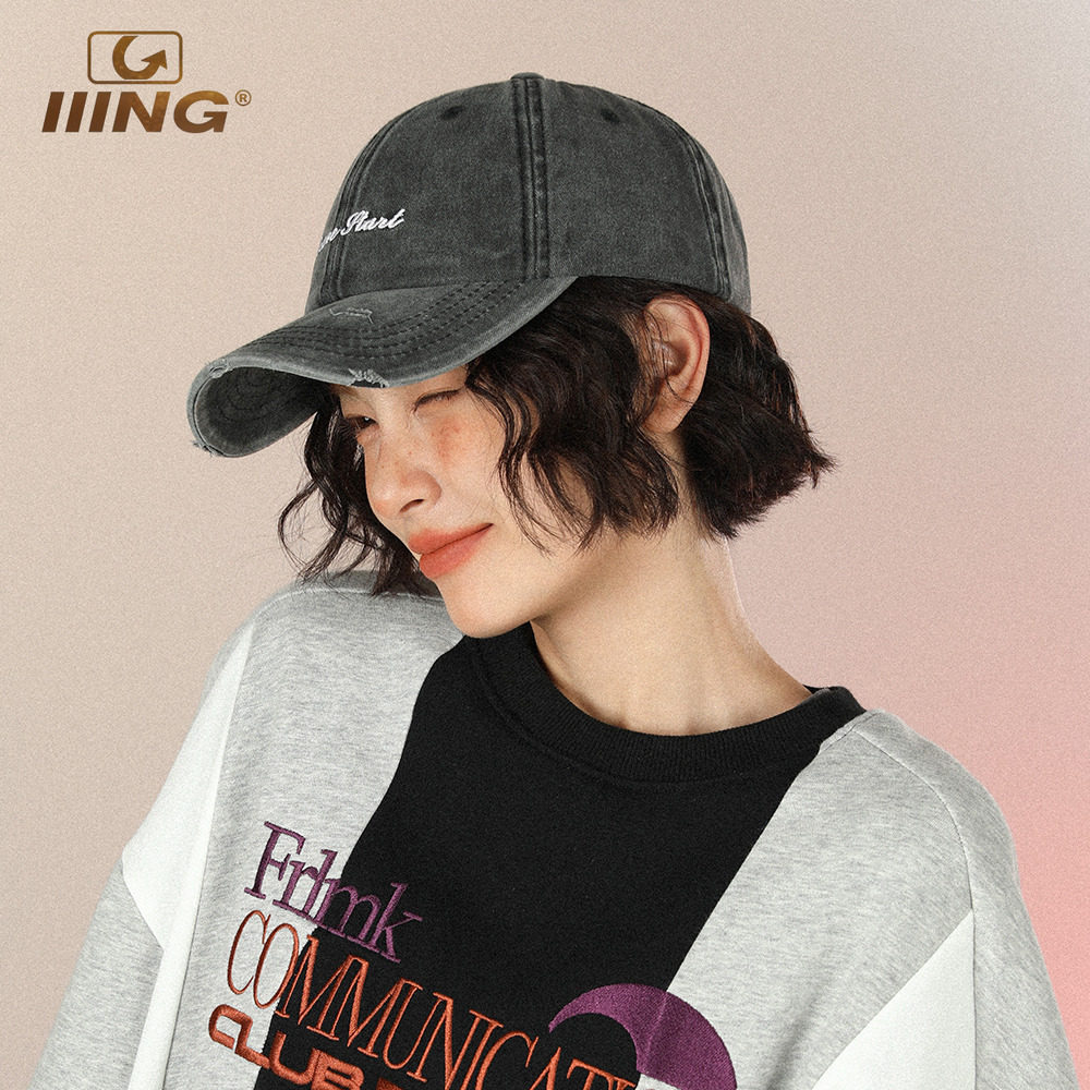 IIING帽控 水洗灰色棒球帽运动休闲韩版 防晒遮阳字母刺绣鸭舌帽子