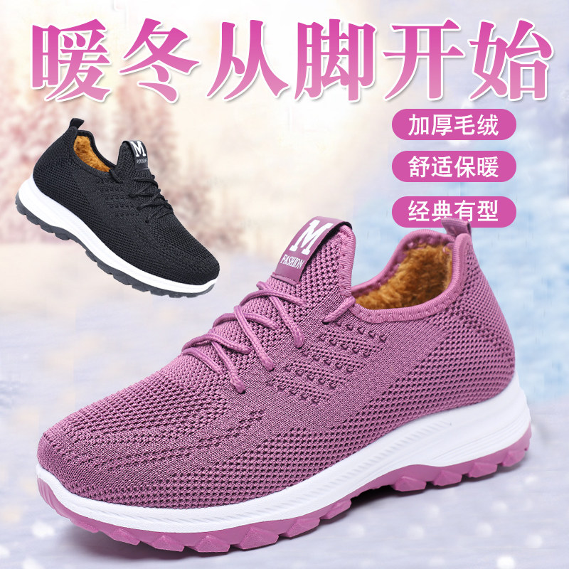 冬季 加厚防滑妈妈棉靴 女加绒保暖百搭休闲运动鞋 新款 中老年人棉鞋