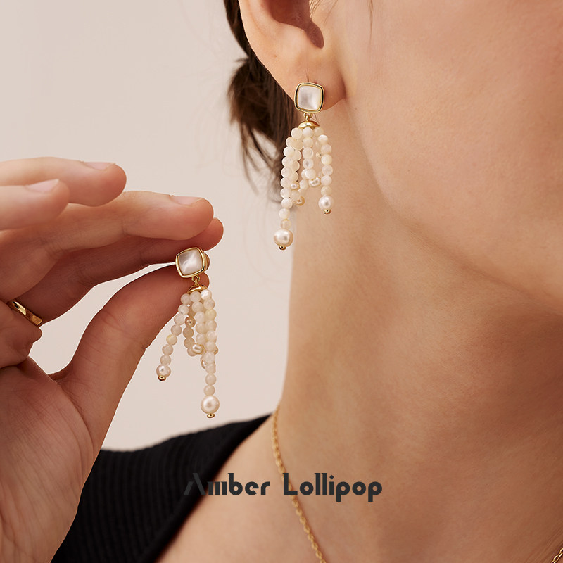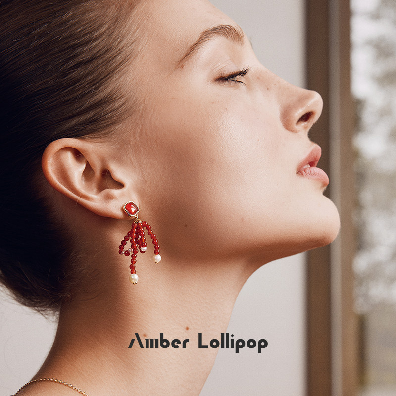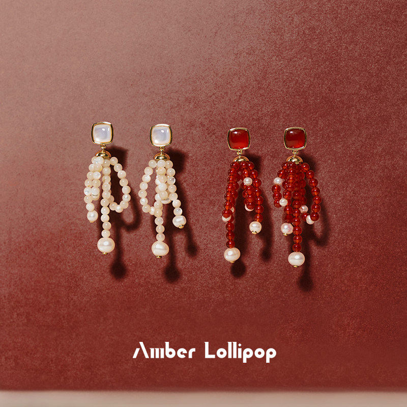新年礼物 AmberLollipop红玛瑙耳环女珍珠流苏耳坠宝石耳饰