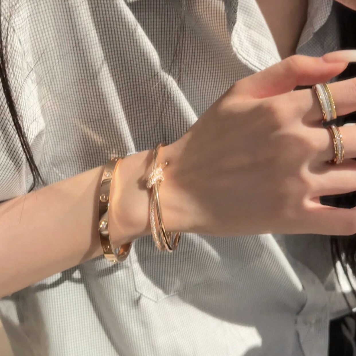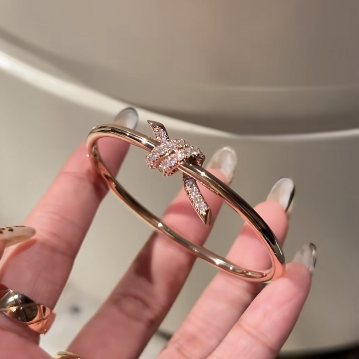 18k金白金玫瑰金天然钻石满天星满钻结绳手镯