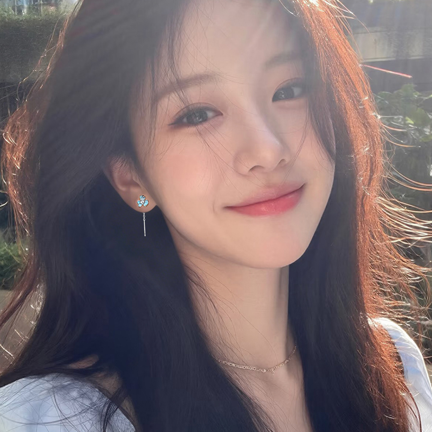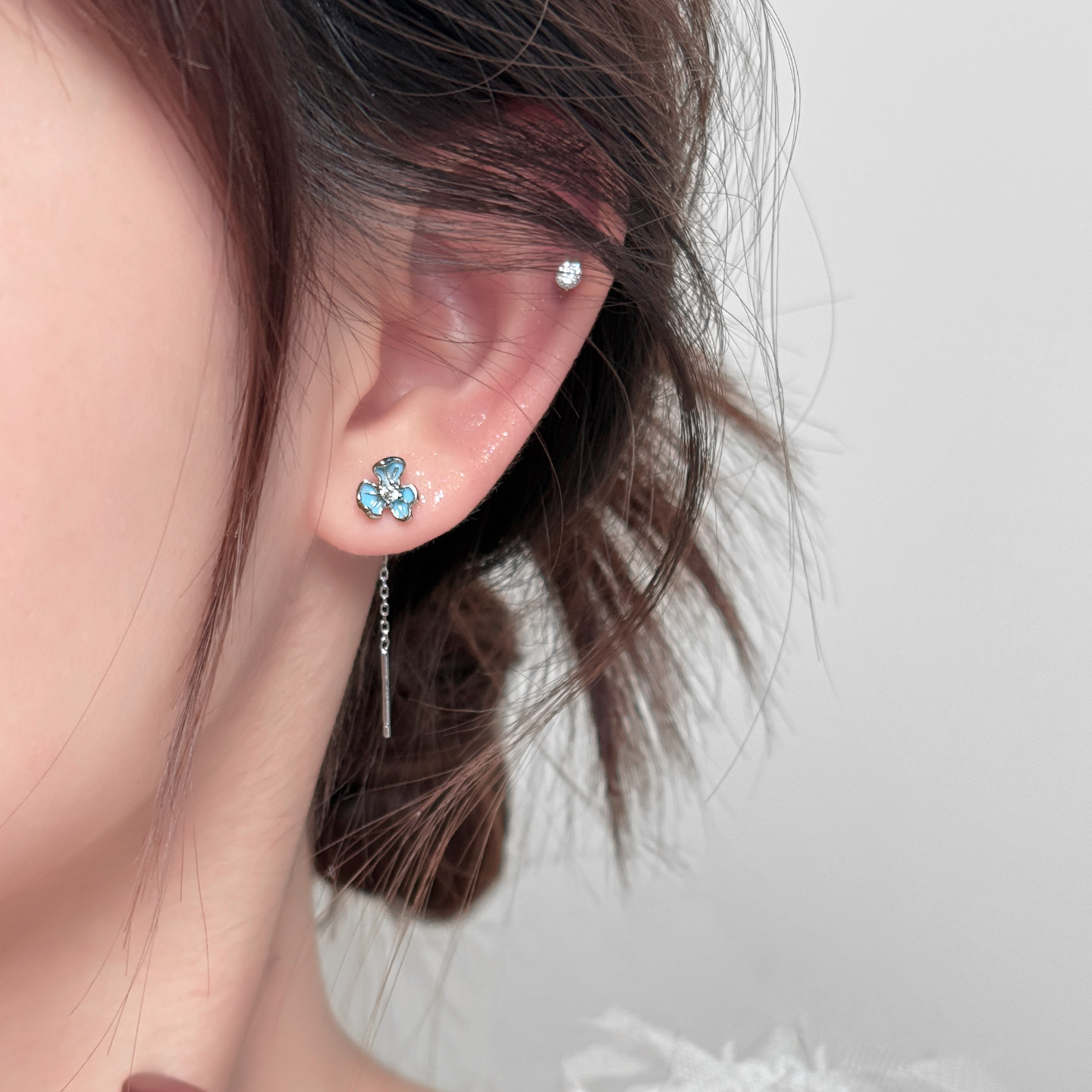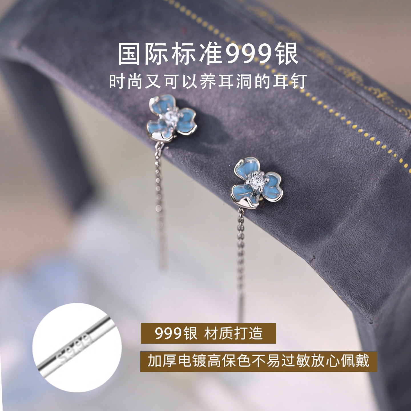 Z小姐999银蓝色鸢尾花流苏耳线女小众气质高级感耳钉2026新款 耳饰