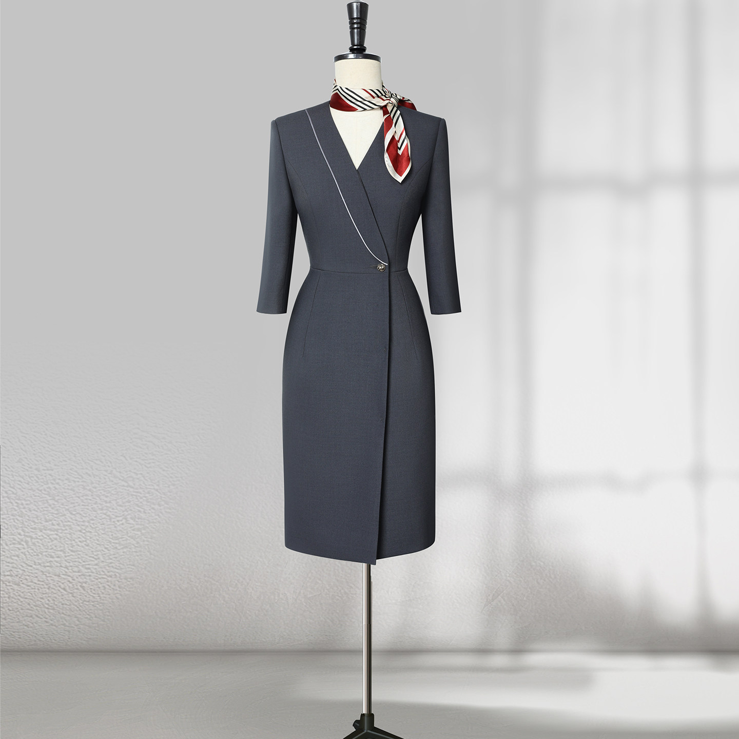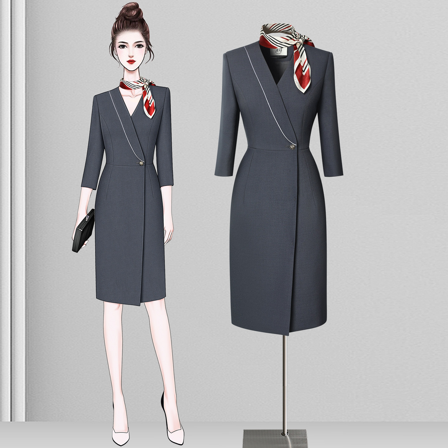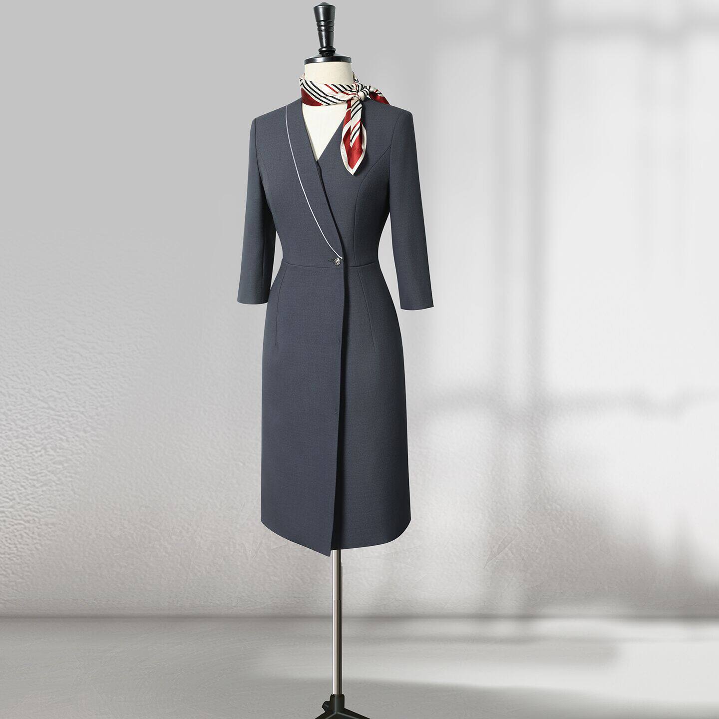显瘦前台接待案场工作服美容工装 七分袖 职业连衣裙女春秋气质修身