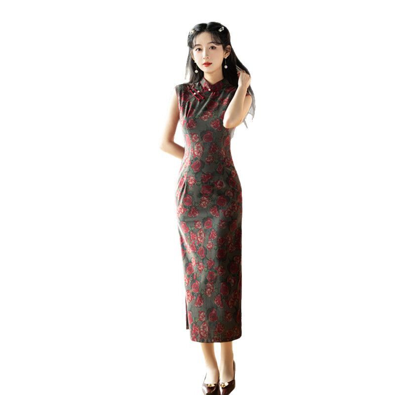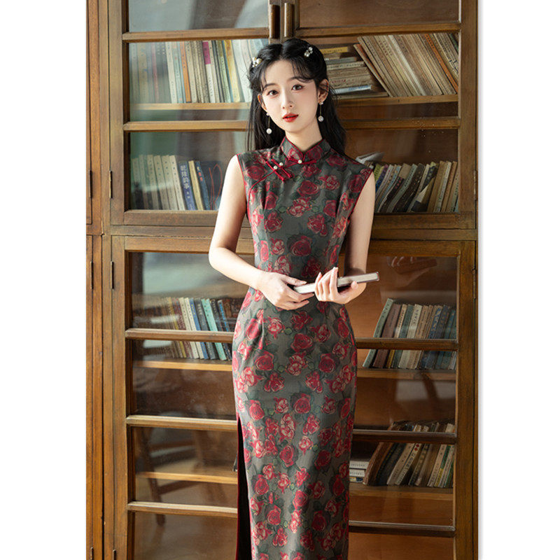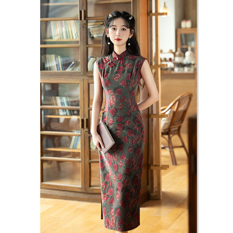 苏州旗袍厂家批发2025春新款 日常旗袍 无袖 复古国风改良新中式 长款