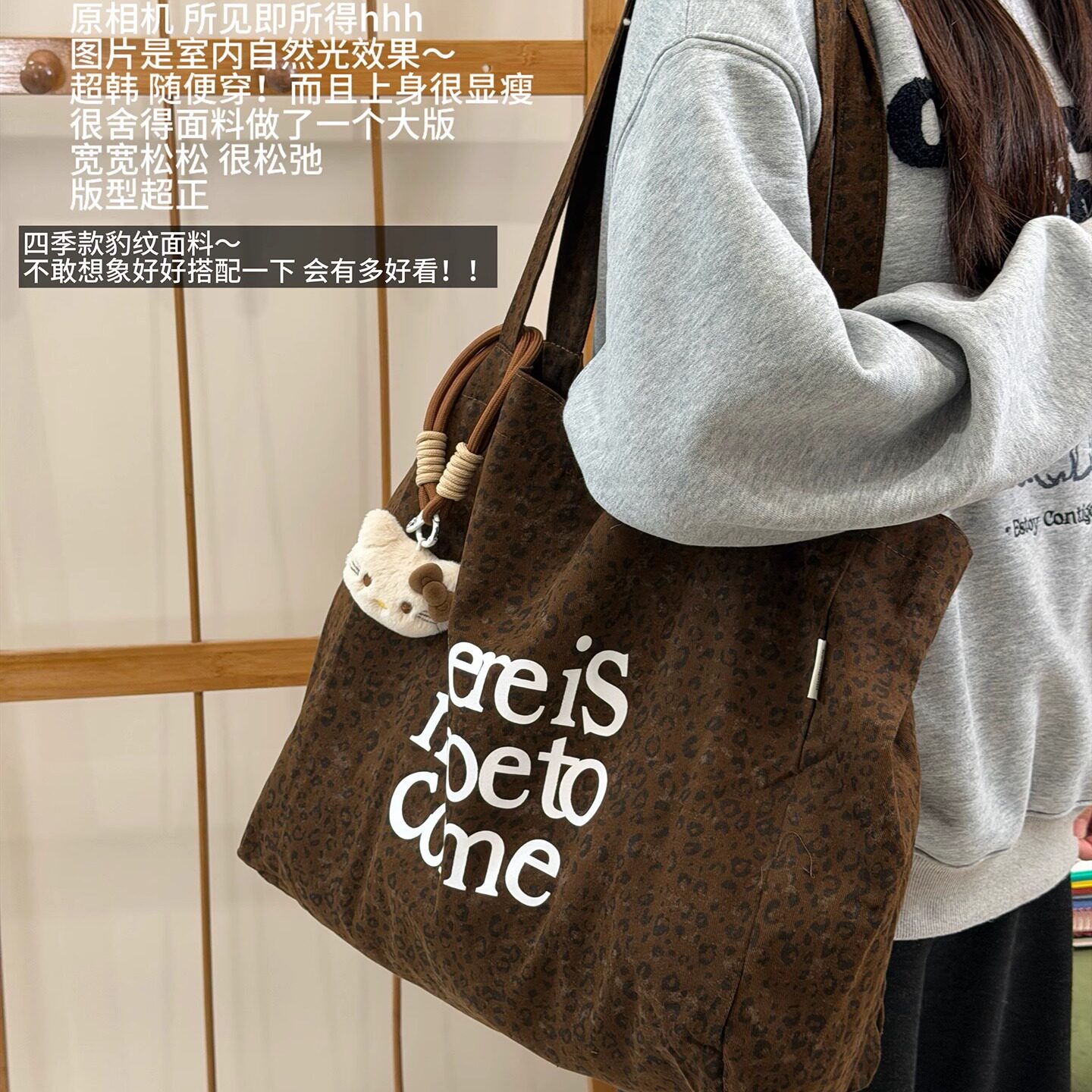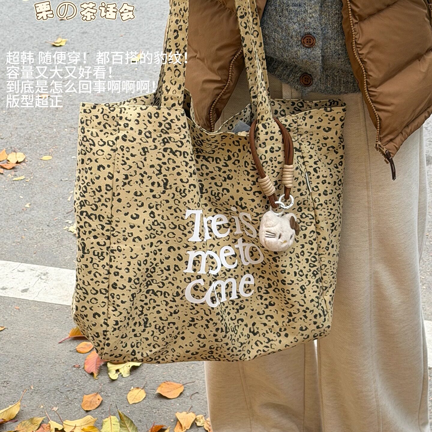 韩系ins风复古豹纹托特包女 大容量通勤单肩包学生简约休闲帆布包