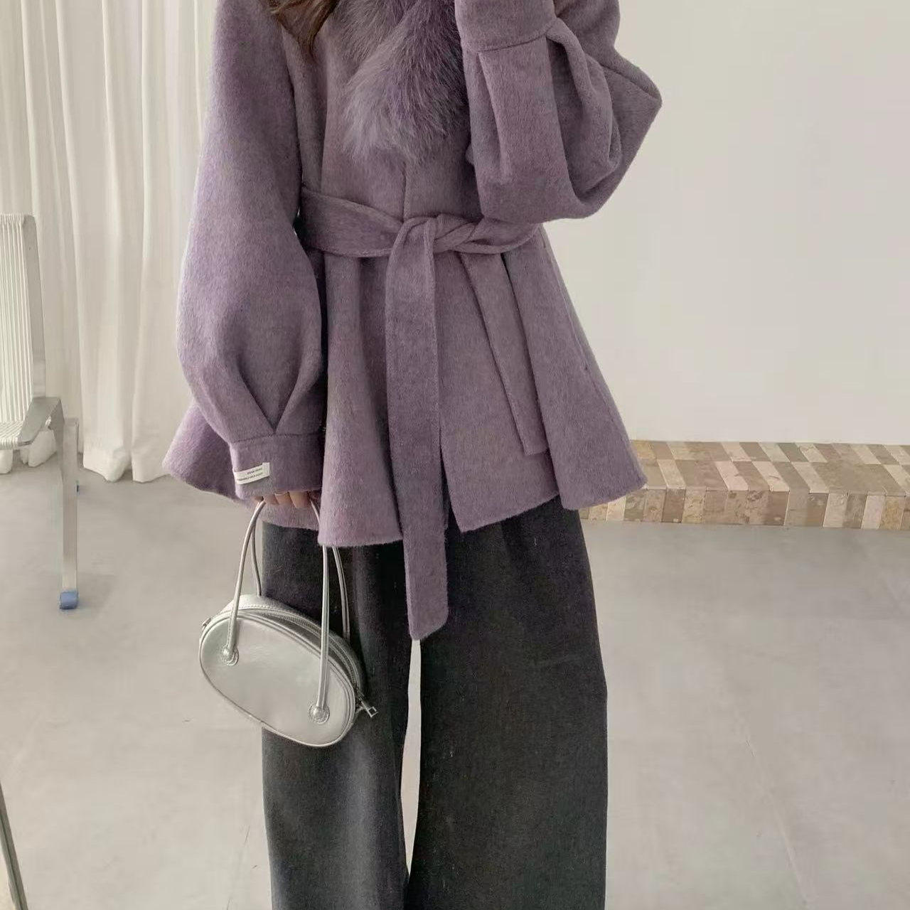 韩版 工厂直售羊毛大衣女2025年新款 高端不起球双面羊毛大衣短款