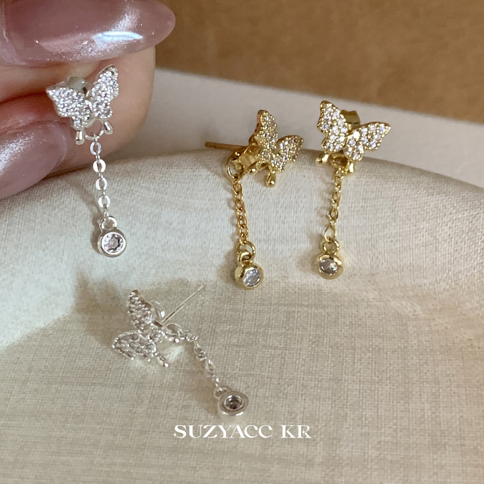 任选4件 99元 轻奢重工镶钻蝴蝶流苏耳钉气质百搭高级感耳环