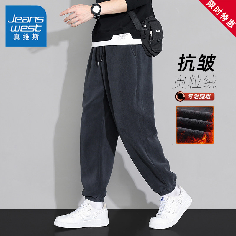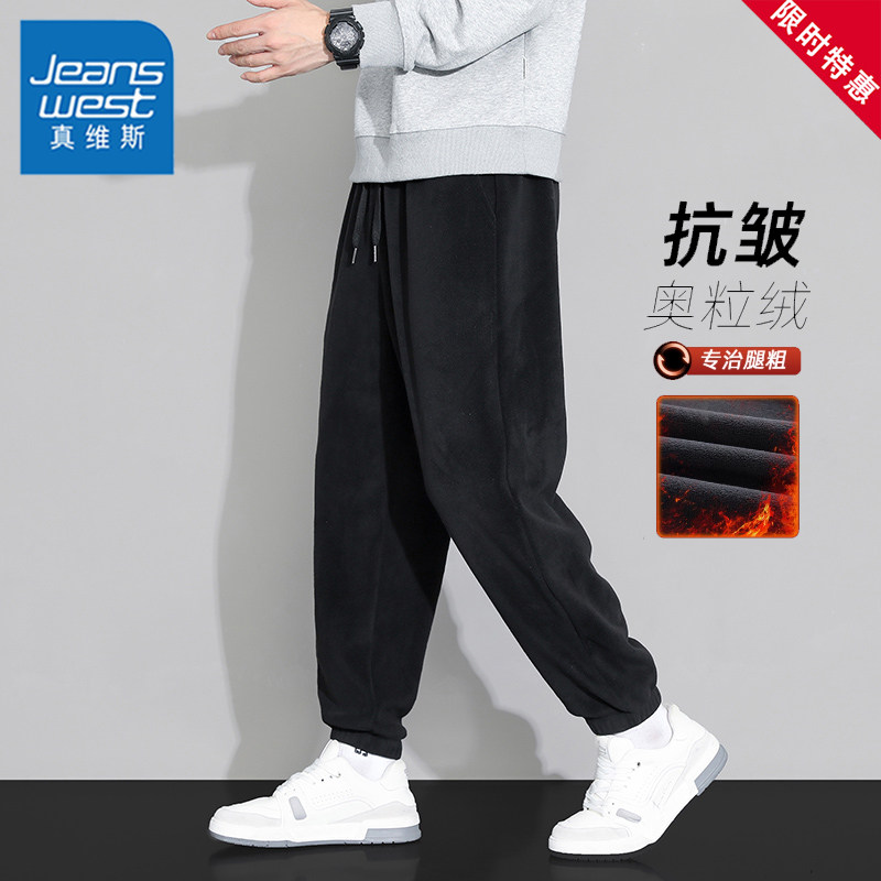 男士 2025冬季 新款 真维斯双面奥粒绒束脚重磅卫裤 加绒加厚休闲裤 子