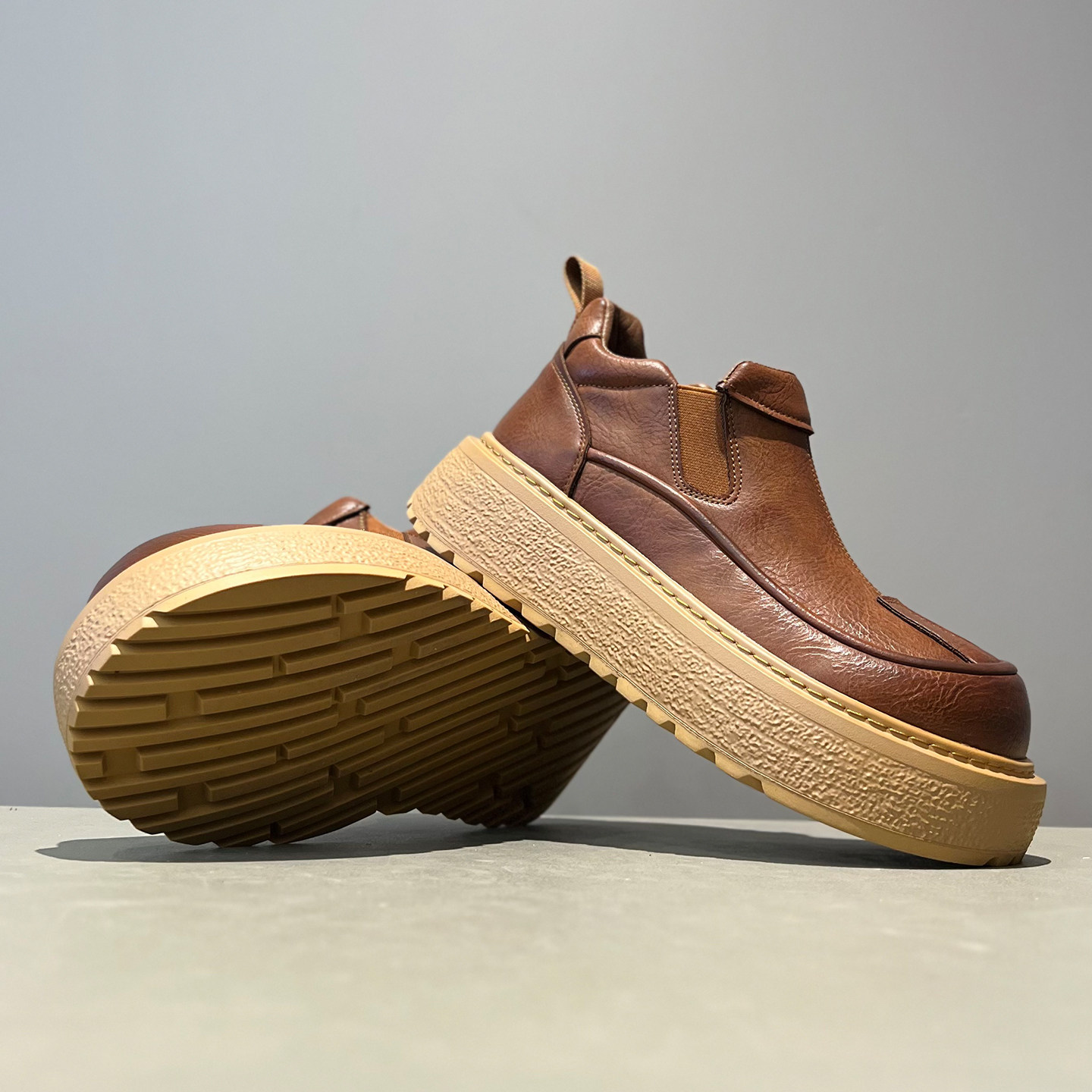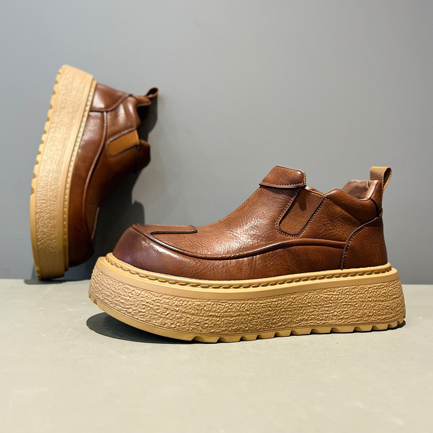 2025秋冬新款 男鞋 真皮高帮休闲棉鞋 厚底棕色加绒保暖一脚蹬马丁靴