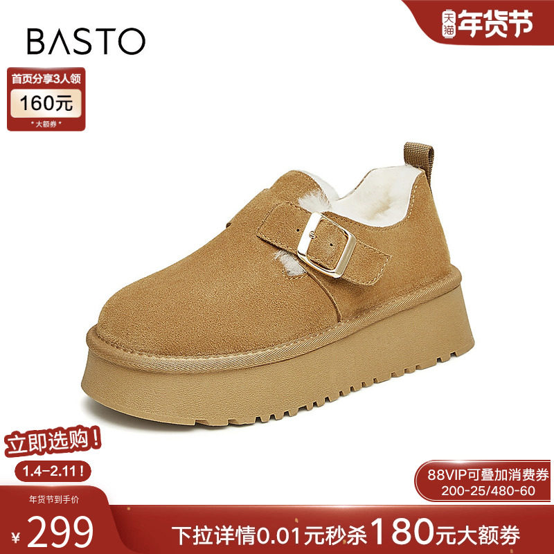 棉鞋 百思图冬商场同款 真皮加绒加厚雪地靴勃肯鞋 厚底女LD626DM3