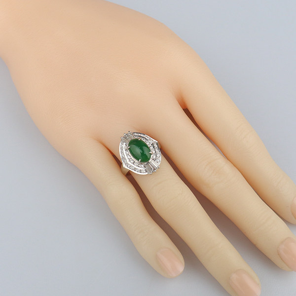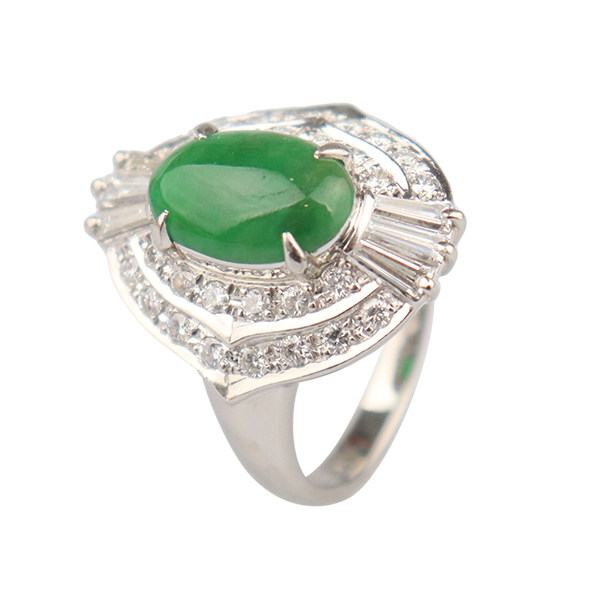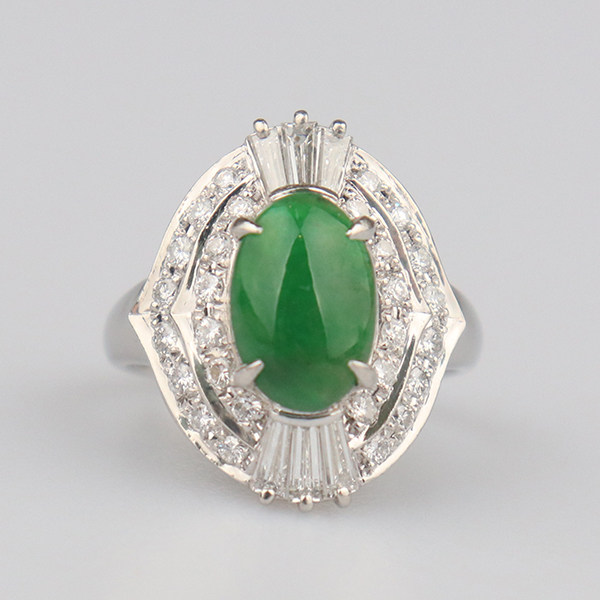 中古95新凸圆形切工翡翠钻石戒指铂金90052号
