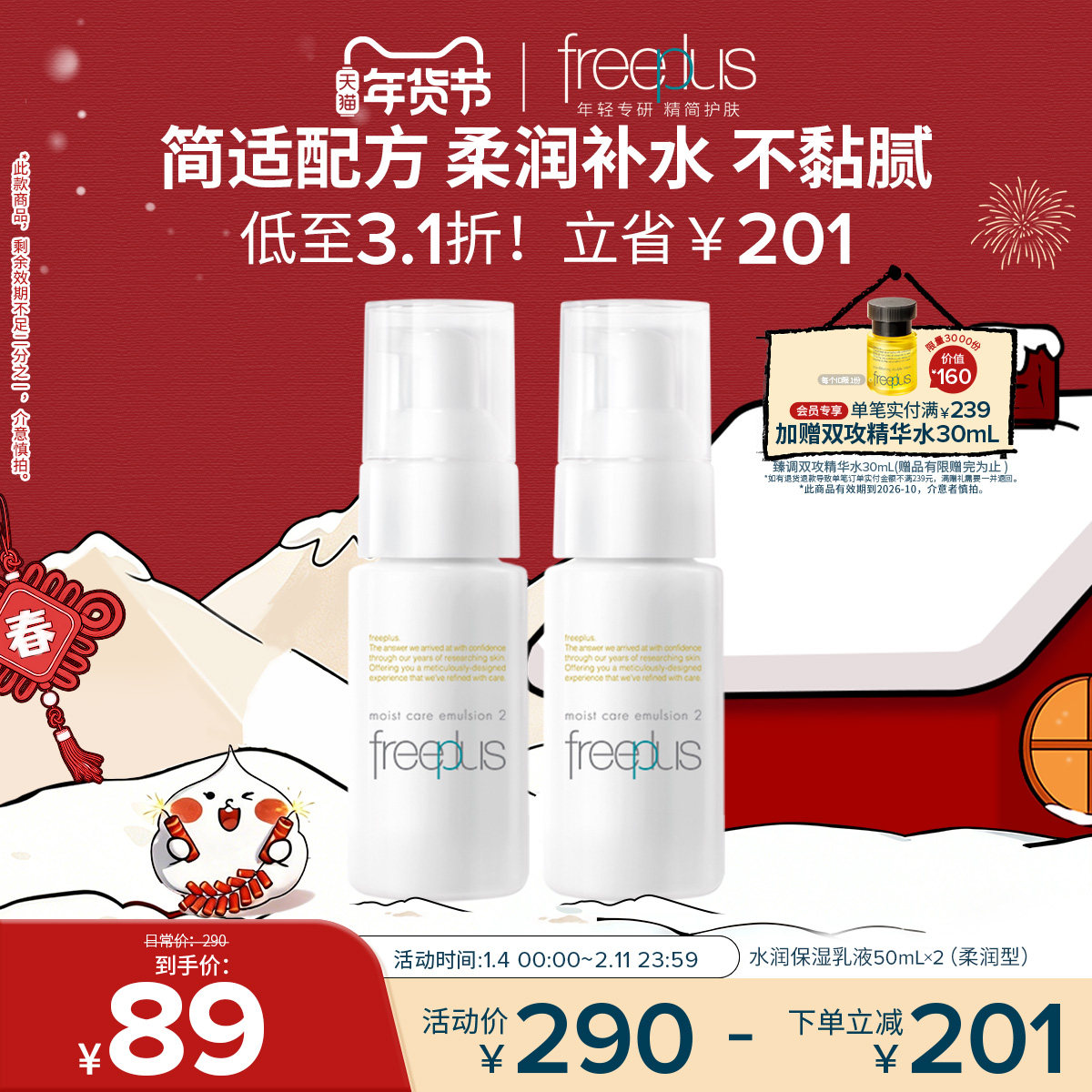 男士 freeplus芙丽芳丝乳液水乳柔润乳保湿 乳护肤补水官方正品 女士
