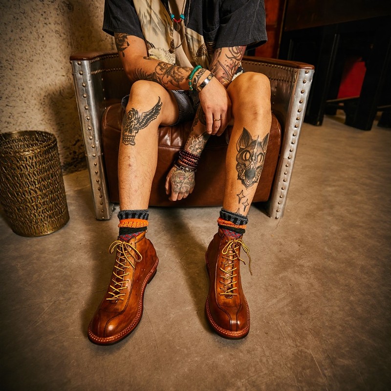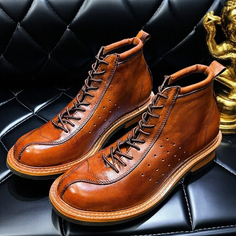 马丁机车短靴高帮骑行皮靴男鞋 美式 复古英伦风真皮中帮工装 伞兵靴