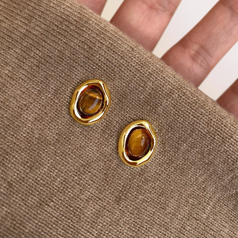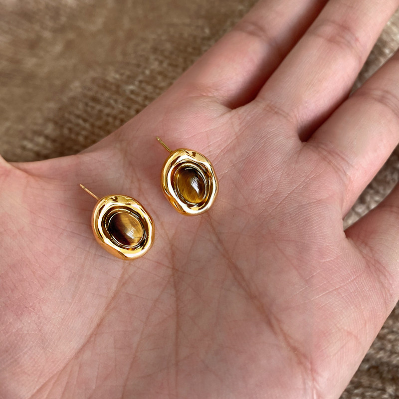 秋冬美拉德虎眼石耳环女气质耳钉高级感轻奢2025年新款 爆款 耳饰品
