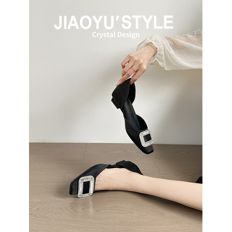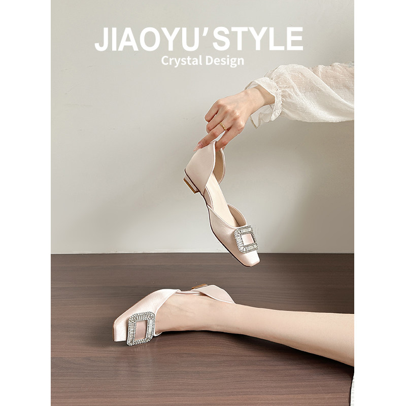 骄屿内增高水钻方扣中空单鞋 新款 法式 真皮 浅口方头通勤玛丽珍鞋