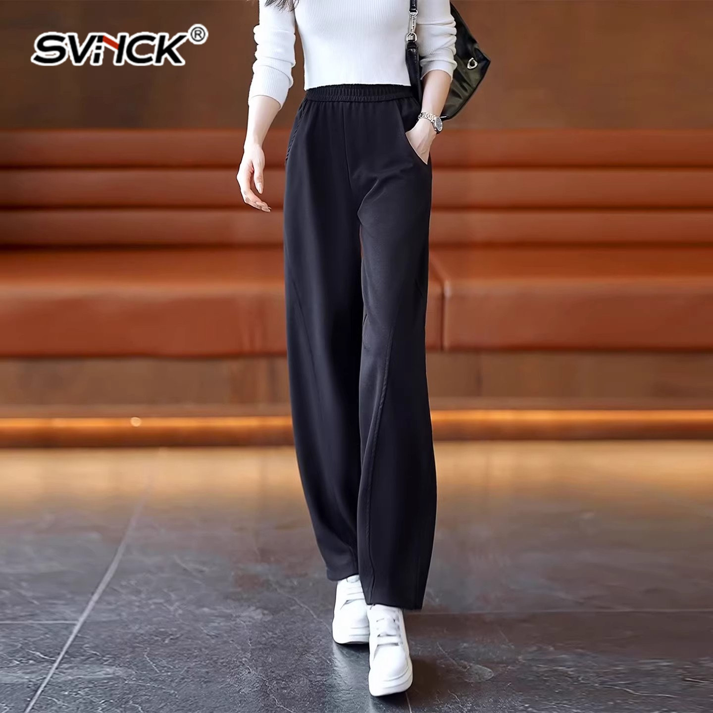 女2026春季 时尚 新款 高腰显瘦直筒阔腿卫裤 窄版 运动裤 百搭裤 子